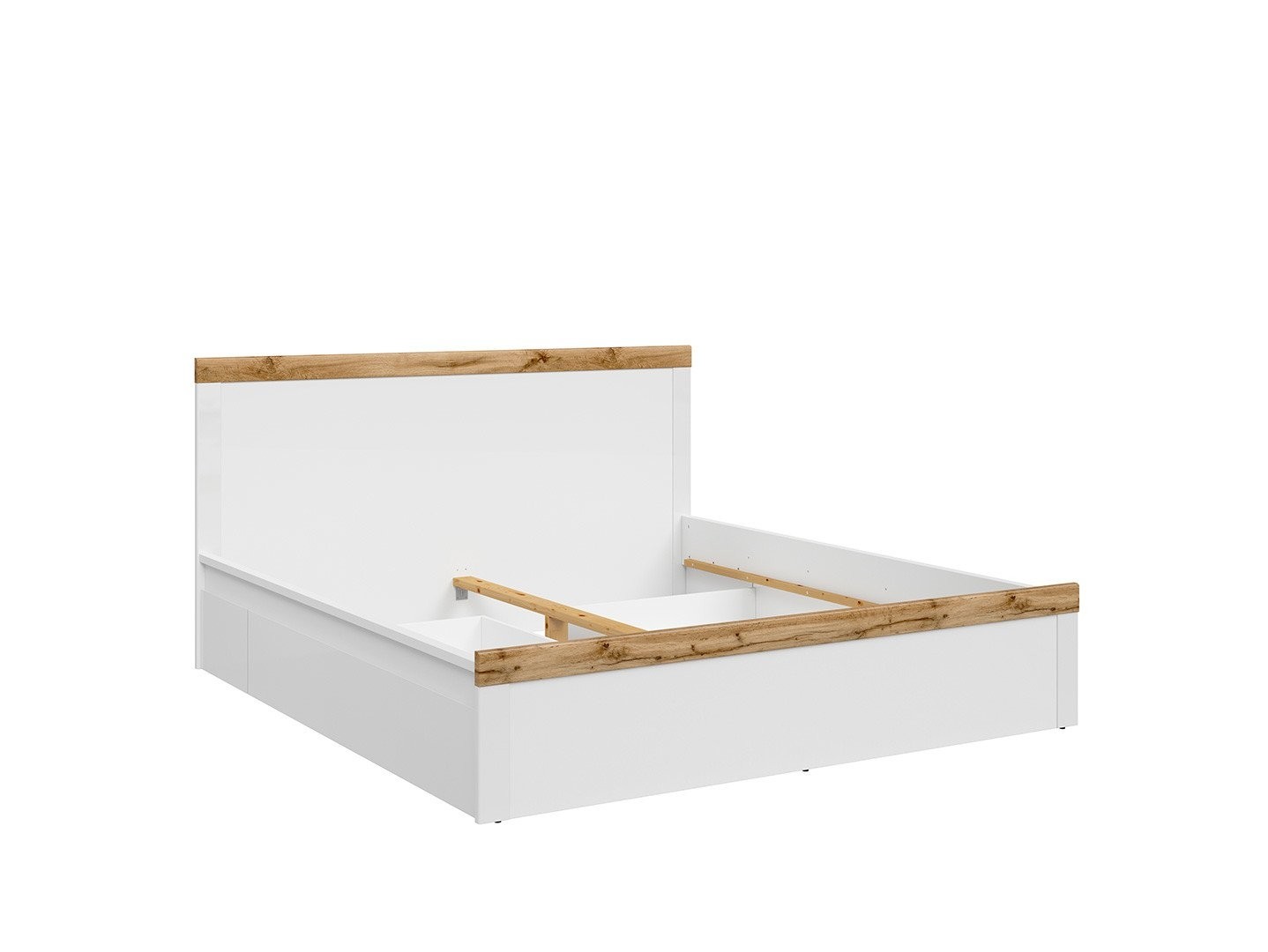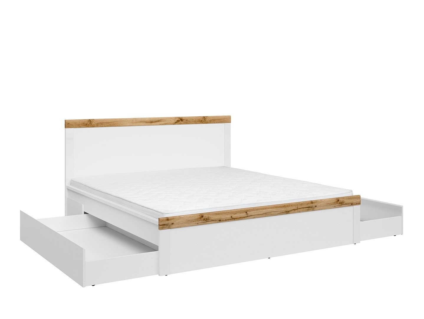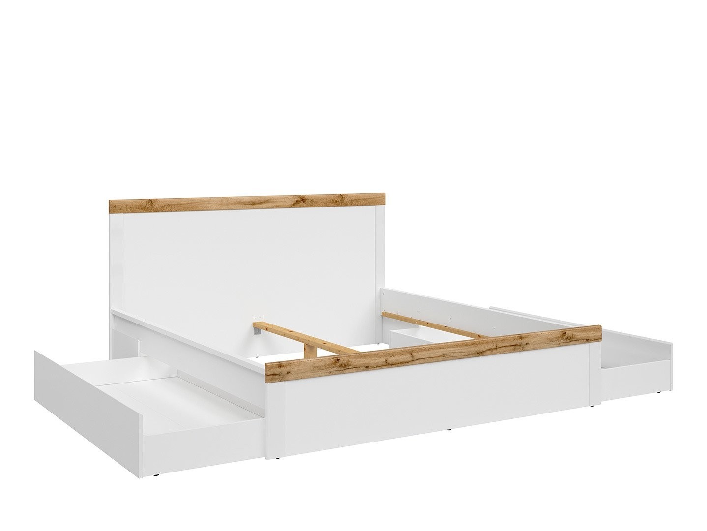 Opremite svojo spalnico s posteljo Noel, ki se ponaša z minimalističnim dizajnom. Na voljo je v kombinaciji bele barve in wotan hrasta, ki izgleda odlično v vsaki spalnici saj se lepo poda z drugimi barvami. Postelji lahko dodate tudi praktične podposteljne predale v katere lahko pospravite posteljnino, odeje, ter dodatne vzglavnike in s tem ohranite pospravljeno in organizirano spalnico! Postelja je na voljo tudi v dimenziji 160x200 cm.