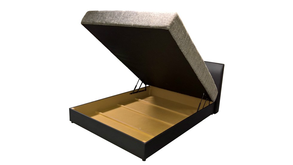 Postelja RON je francoska postelja v kombinaciji umetnega usnja in tkanine. Vzmetnica je vzmetena in dvižna, kar omogoča zaboj za shranjevanje v notranjosti postelje.