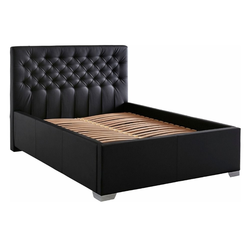 Udobna postelja SANDRA z umetnim usnjem, na voljo v črni in beli barvi.