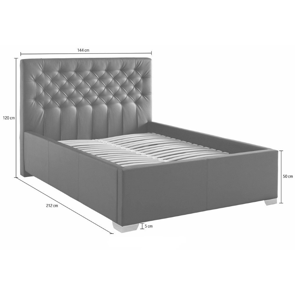 - Vzglavna plošča je prešita z okrasnimi šivi v obliki rombov, ki popestrijo videz postelje