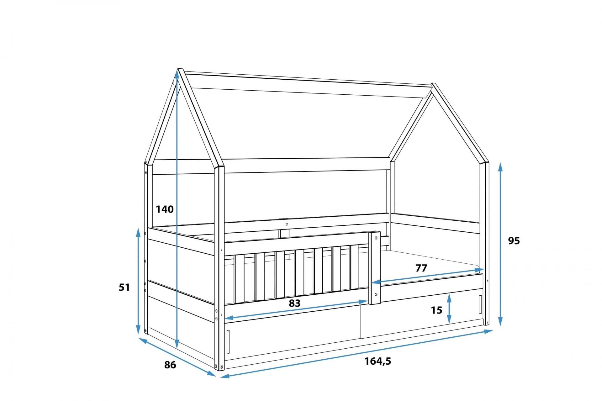 Postelja SMART 2 domek je modernega izgleda. Konstrukcija je narejena iz kakovostne in vzdržljive HDF plošče. Posteljni okvir je iz borovega lesa, prebarvan z vodnim lakom v različnih barvah. Postelja vsebuje prostor za shranjevanje in dodatek v obliki hiške. Vzmetnica je vključena. Največja nosilnost ogrodja je 100 kg.