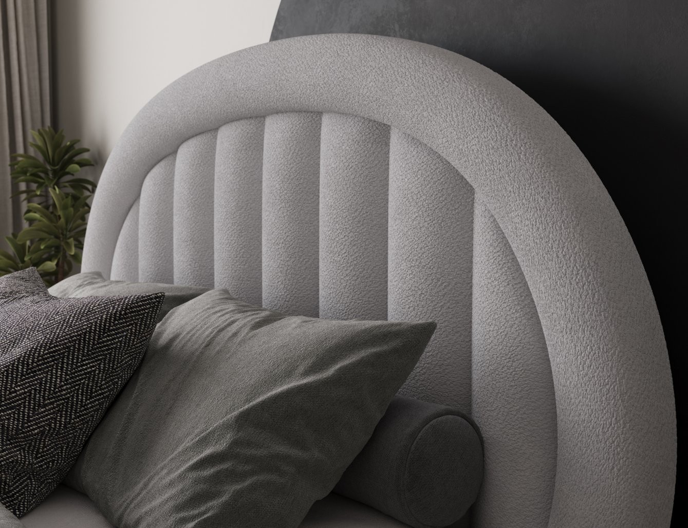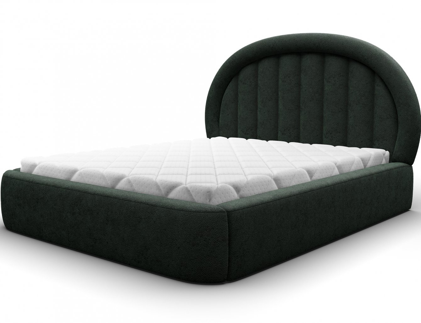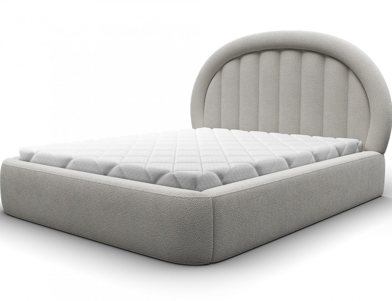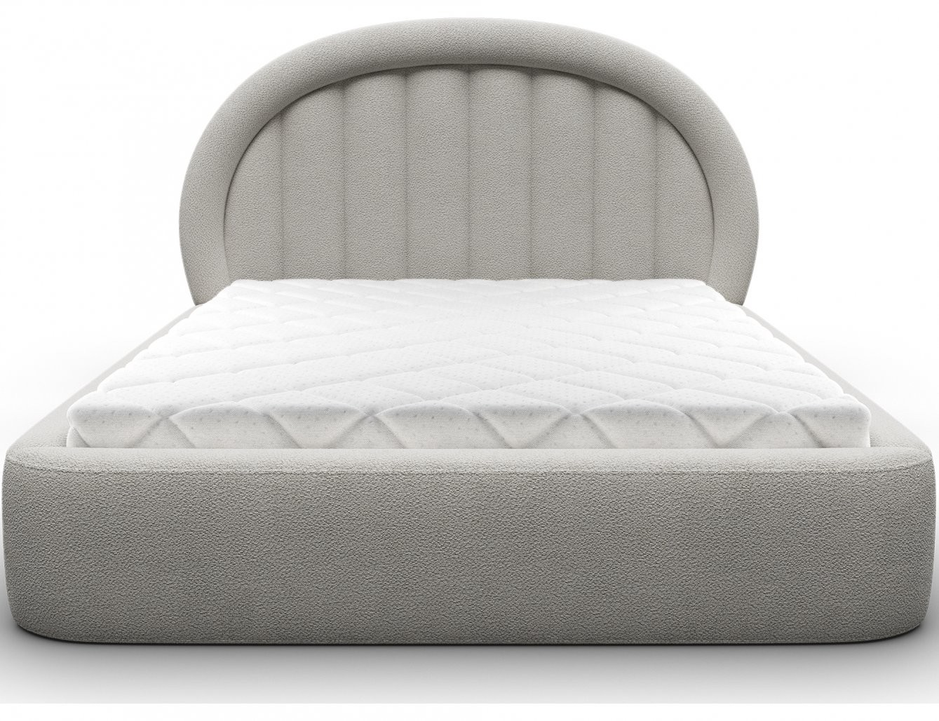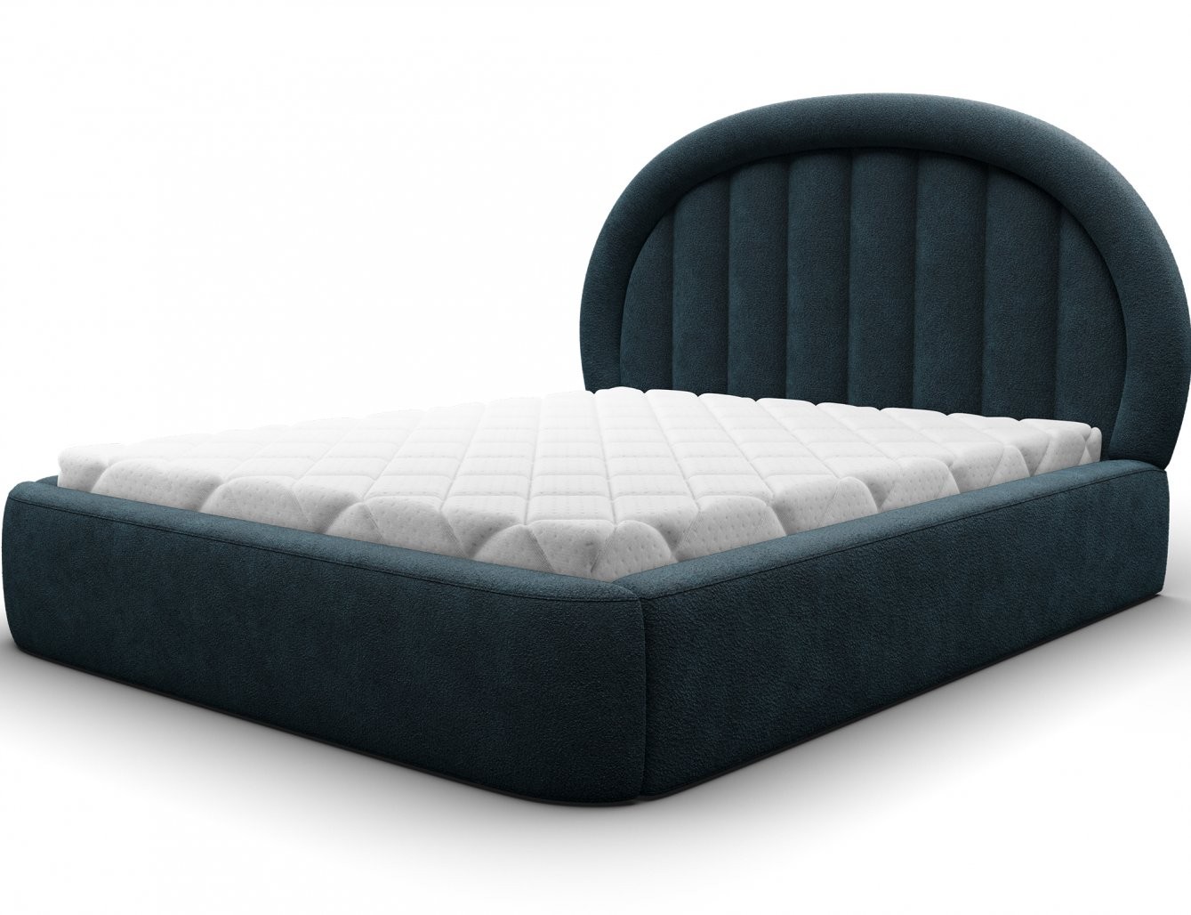 Konstrukcija postelje je premišljeno zasnovana. Polnilo iz visoko kakovostne poliuretanske pene T2130 zagotavlja optimalno podporo telesu in izjemno udobje. Skupna višina postelje je 131 cm, globina pa 221 cm, kar konstrukciji daje eleganten in dobro uravnotežen videz. Stabilne črne plastične noge dodajajo lahkotnost in sodoben pridih.