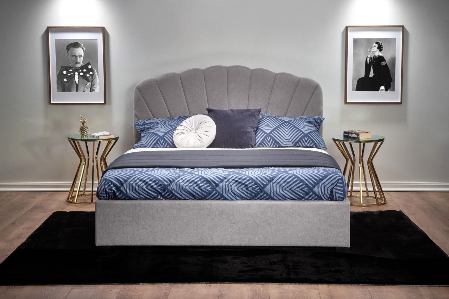 Postelja Urar v svetlo sivem oblazinjenju in modernem dizajnu je idealna za spalnice, saj vključuje predal za shranjevanje. Prilagojena je za vzmetnico velikosti 160x200 cm in združuje funkcionalnost ter preprost, eleganten videz za klasične in sodobne interierje.
