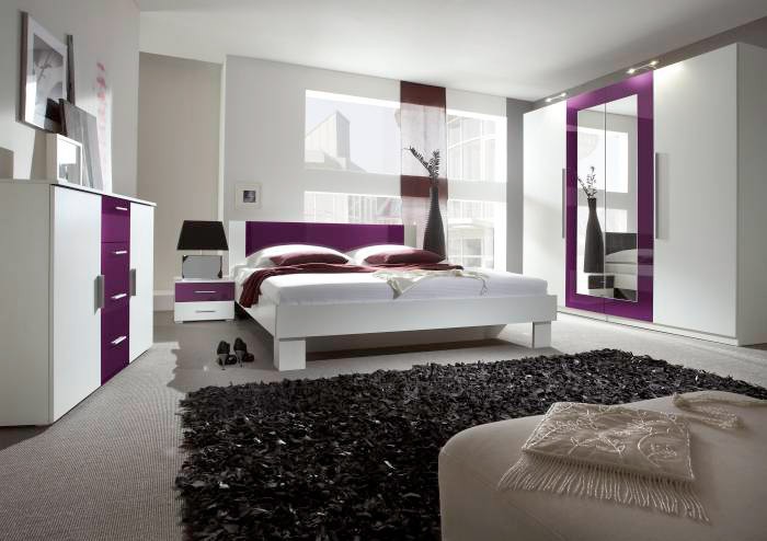 Postelja VERA z nočnima omaricama (bela-lila) je izredno elegantna in stabilna postelja. na voljo ej v dimenziji 180x200. Postelja je v beli barvi v kombinaciji z lila.