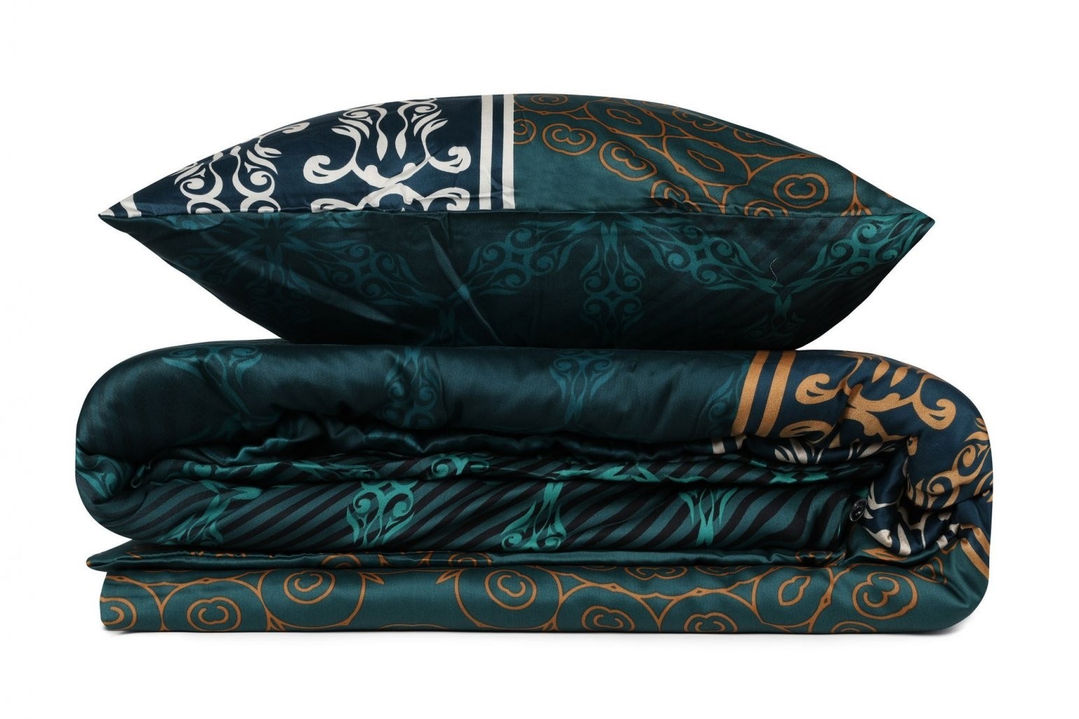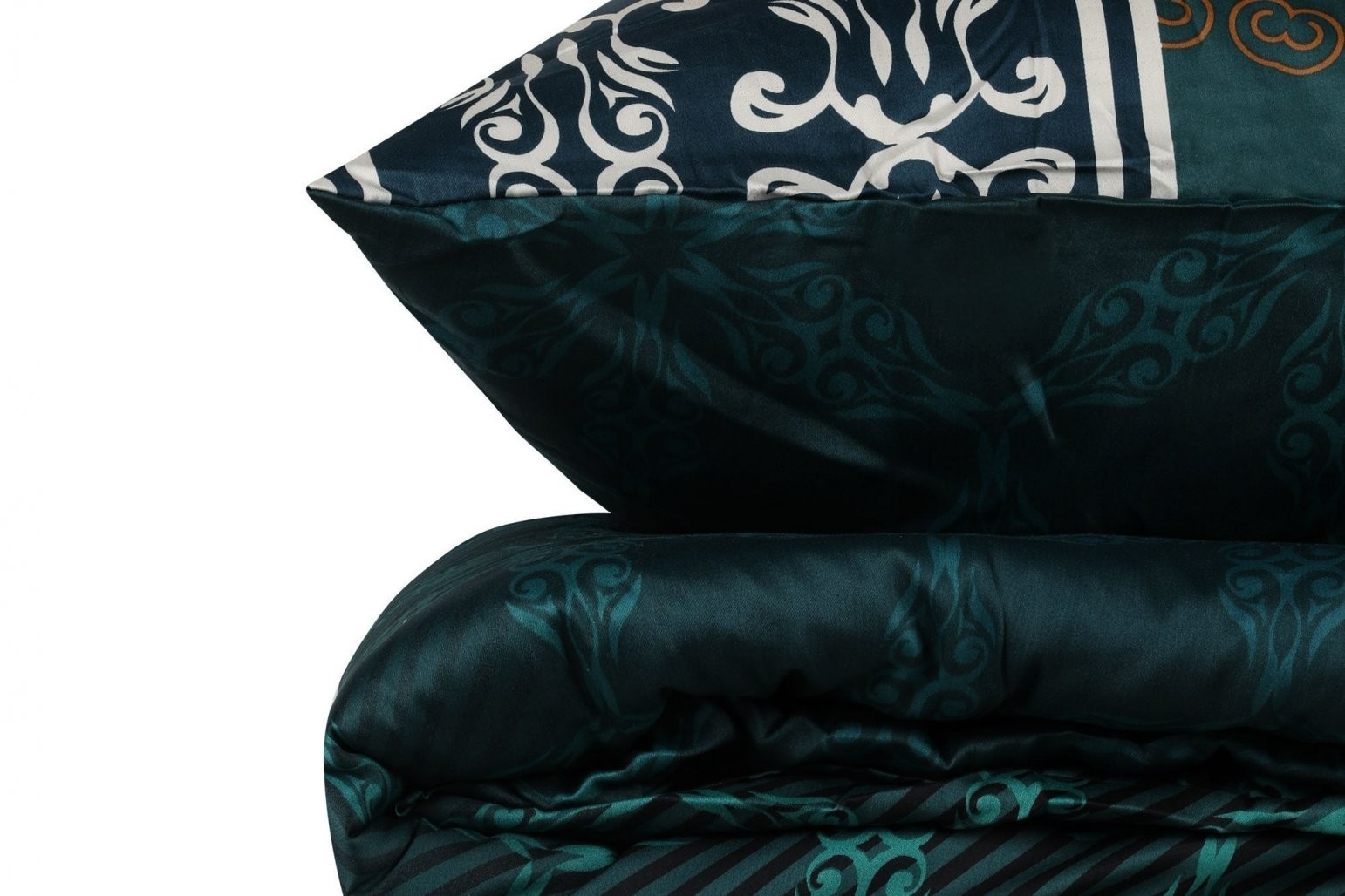 Privoščite si kvalitetno in ugodno posteljnino, ki je narejena iz bombažnega satena. V kompletu prejmete prevleko za odejo, rjuho, dve navadni prevleki za vzglavnika in dve oxford prevleki, ki imata na robu še dodatno tkanino.