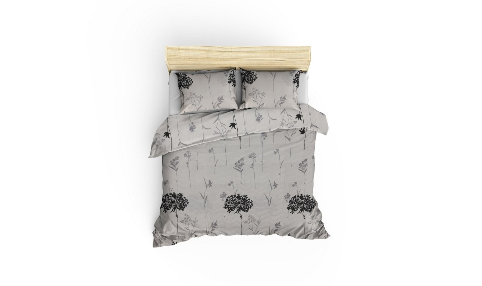 Posteljnina EFILO v beli barvi z črno sivimi vzorci bo odličen dodatek vaši spalnici. Ta komplet vsebuje pregrinjalo za posteljo in dve prevleki za vzglavnika, ki ima sistem preklopa, ta pa je enostavnejši in hitrejši od sistema zadrge.