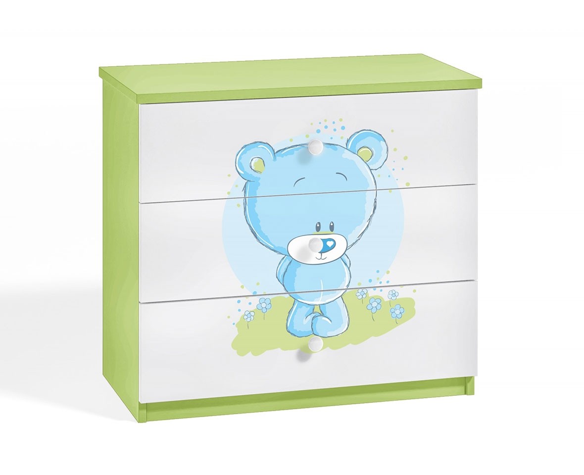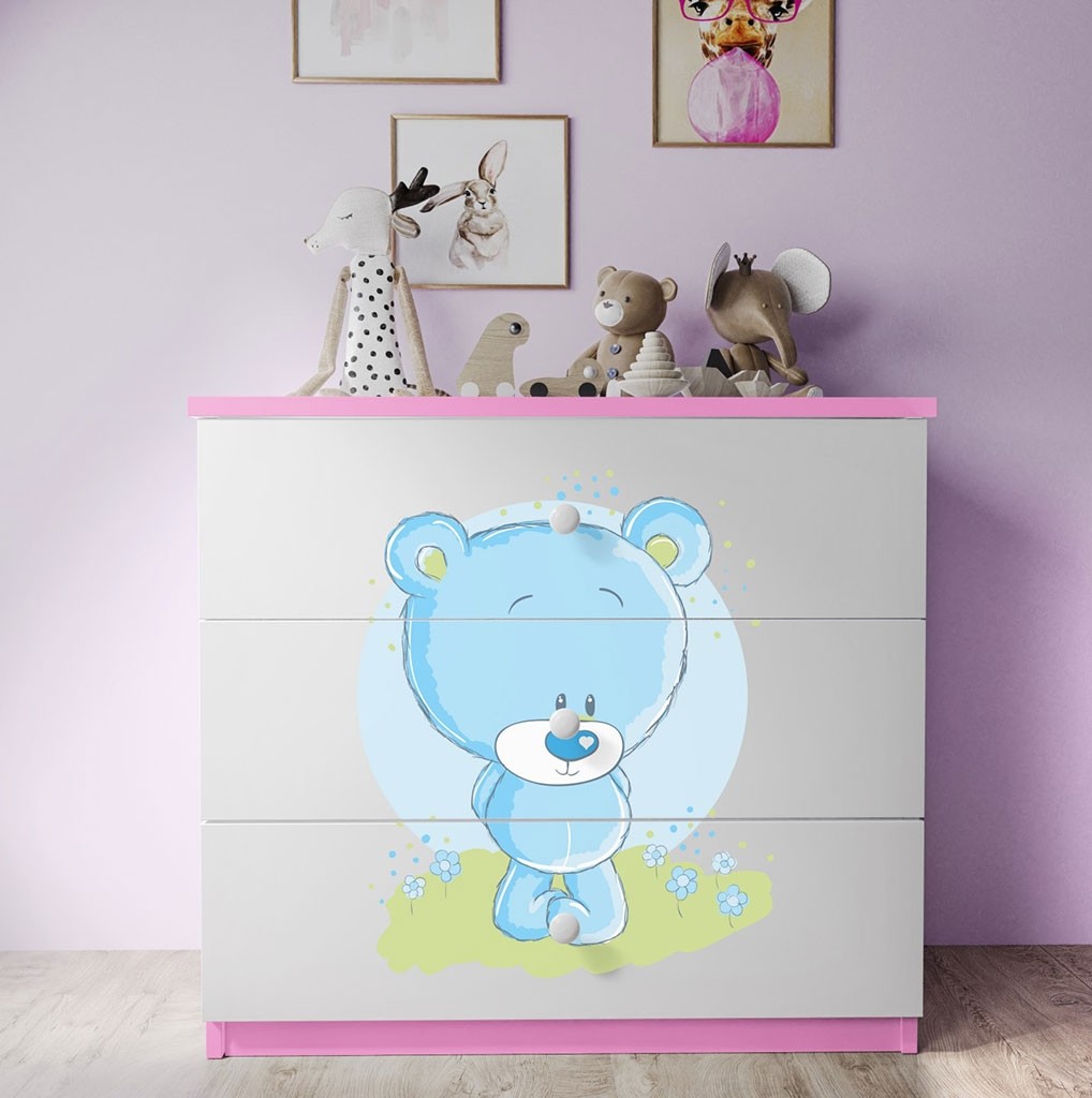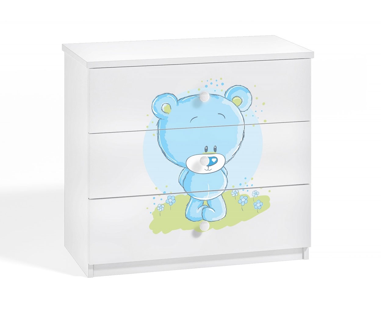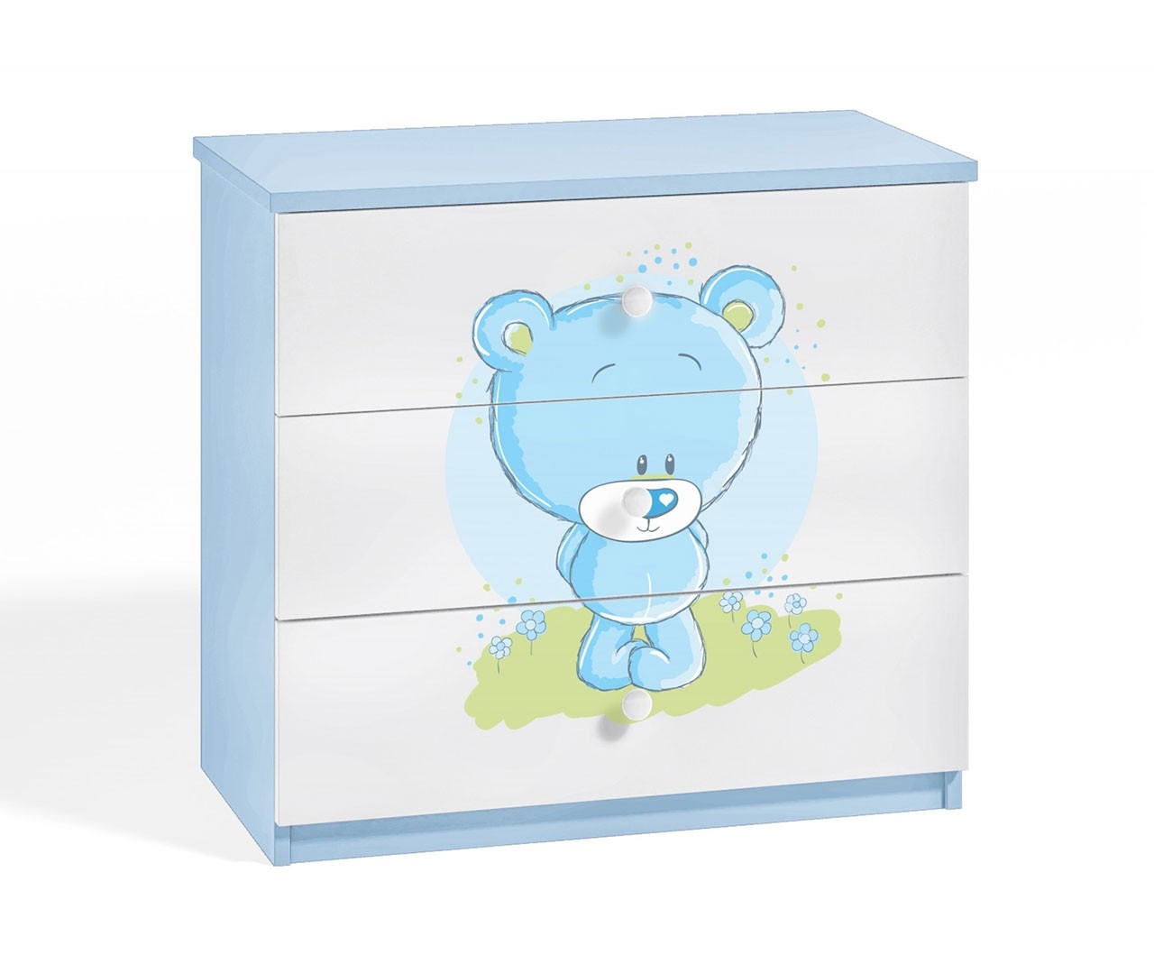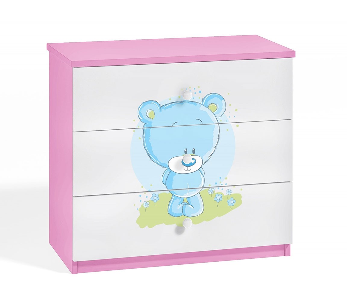 Opremite otroško sobico s prikupnim predalnikom DREAMY z motivom modrega medvedka, ki bo v veselje vsakemu otroku! Predalnik ima tri prostorne predale, ki nudijo obilo prostora za shranjevanje oblačil in igrač. Predalnik je del otroške kolekcije DREAMY, ki je na voljo v štirih različnih barvah in s številnimi različnimi motivi, ki so primerni tako da punčke kot za fantke.