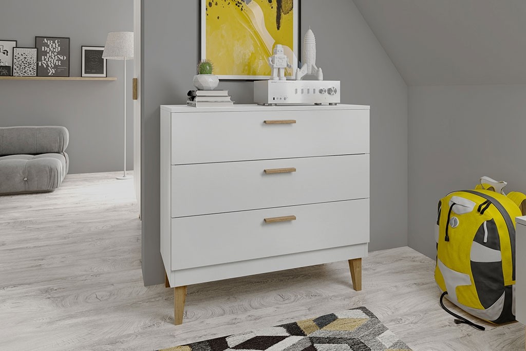 Če iščete priročno komodo v modernem skandinavskem dizajnu potem je predalnik KELLY kot nalašč za vas! Moderna barva kombinacija in dizajn bosta vaš dom modernizirala in v njem ustvarila prijeten ambient. Predalnik je razdeljen na tri prostorne predale v katerih lahko hranite različne predmete. Univerzalni videz predalnika vam omogoča, da ga uporabite v različnih prostorih svojega doma.