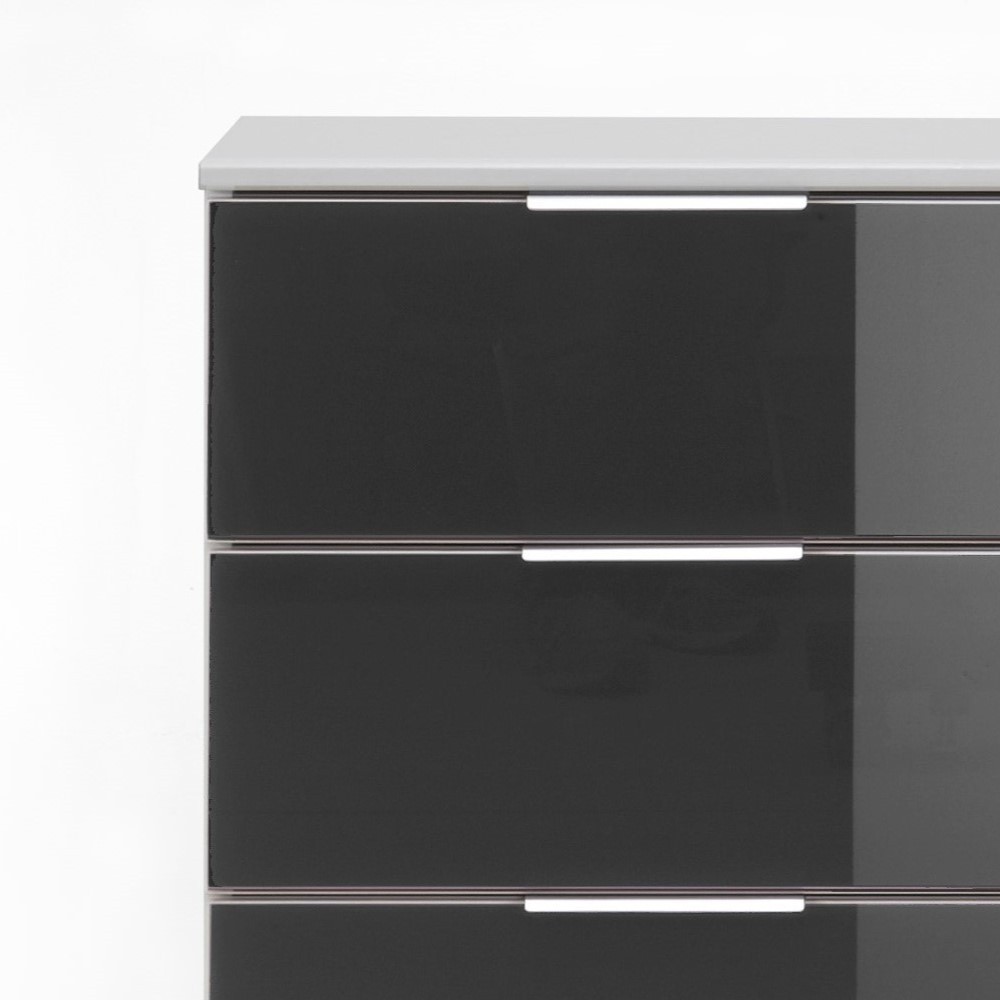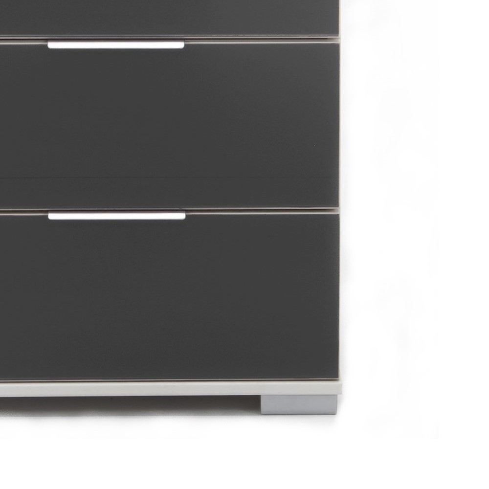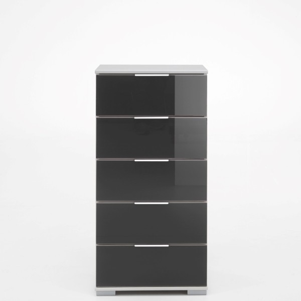 Predalnik LOLITA 1 je odlična izbira za vse, ki želite eleganten predalnik nemške kvalitete, ki bo dolgo časa ostal lepo ohranjen. Moderna kombinacija bele in temno sive barve po popestrila vsako sobo, steklene fronte pa poskrbijo za eleganten videz. Predalnik ima 5 prostornih predalov v katere lahko pospravite najrazličnejše predmete.
