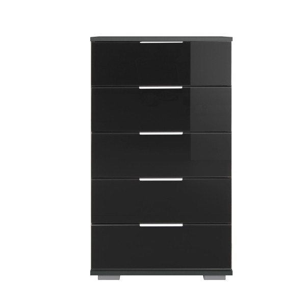 Predalnik LOLITA 2 je odlična izbira za vse, ki želite eleganten predalnik nemške kvalitete, ki bo dolgo časa ostal lepo ohranjen. Moderna kombinacija temno sive in črne barve po popestrila vsako sobo, steklene fronte pa poskrbijo za eleganten videz. Predalnik ima 5 prostornih predalov v katere lahko pospravite najrazličnejše predmete.