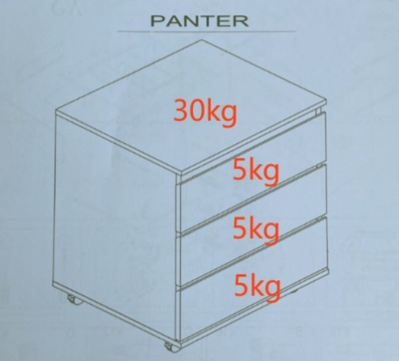 PREDALNIK PANTER je moderni predalnik v beli barvi v visokem sijaju, ki je idealen dodatek h vaši pisalni mizi, saj ima tri prostorne predale, kamor lahko pospravite vse vaše pomembne papirje in pisarniško galanterijo, in tako ohranite čisto in urejeno delovno površino. Predalnik je na kolesih, kar vam omogoča lažje premikanje in prepreči poškodbo tal. Plošče predalnika so rahlo zaobljene, kar omogoča lažje odpiranje. Predalnik lahko pospravite pod mizo in tako ohranite videz večjega prostora.