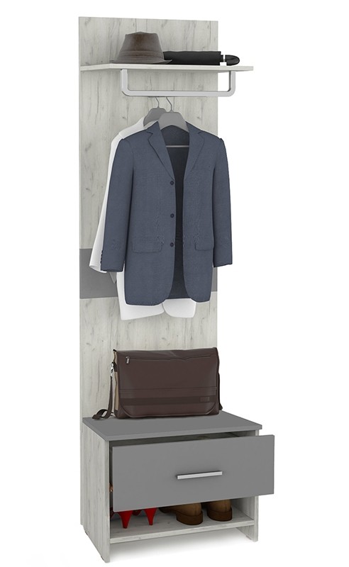 Praktična predsoba Doran je odlična za manjša stanovanja saj ne zavzame veliko prostora, hkrati je pa zelo funkcionalna in vsebuje vse kar potrebujete. Predsoba je sestavljena iz priročne odlagalne police za kape in zložljive dežnike, obešalnika za jakne in bunde, spodaj pa ima omarico za čevlje, ki lahko služi tudi kot klop.
