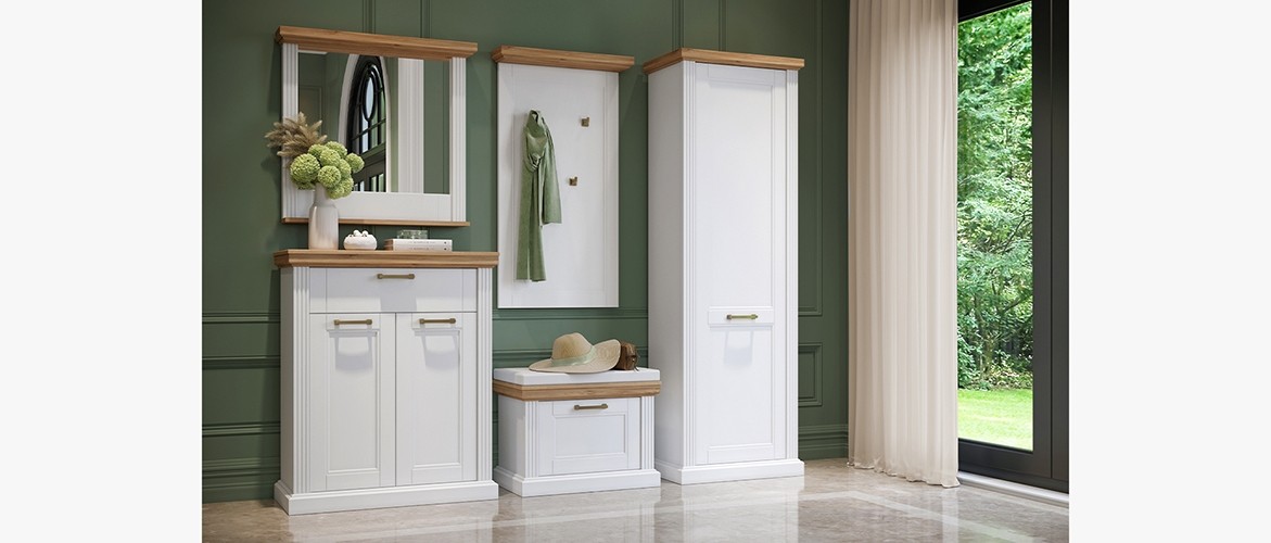 Predsoba MILLA TARA vključuje visoko vitrino, komodo, stenski obešalnik, ogledalo in omaro za čevlje. Vsi elementi imajo tiho zapiranje vratc in predalov, kar vam omogoča lažjo vsakodnevno uporabo ter preprečuje nastajanje prask in poškodb. Zunanji deli so premazani z UV lakom, ki je štirikrat bolj odporen na praske in poškodbe kot standardni laki, zato bo pohištvo dlje časa ostalo lepo ohranjeno in bo izgledalo kot novo!
