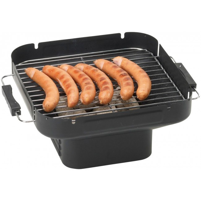 Prenosni žar na oglje H boste lahko odnesli s sabo na piknik ali kampiranje. Mrežica je kromirana, nastavljiva v dveh višinah, ohišje pa je v črni barvi.