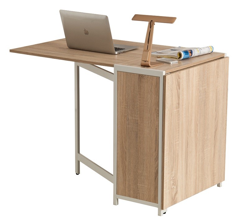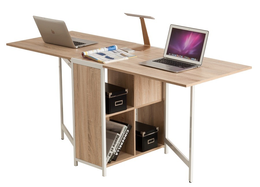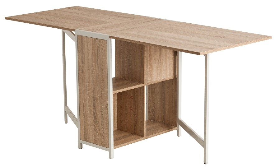 Računalniška miza OPEN je multifunkcijska računalniška miza v svetli hrast barvi z štirimi večjimi policami. Miza je zasnovana tako, da se sestavlja. Uporabljata jo lahko dve osebi hkrati, ali samo ena, ima pa tudi možnost, da se jo popolno sestavi in jo uporabite kot manjšo ogladalno mizico. Podnožje je kovinsko v beli barvi.