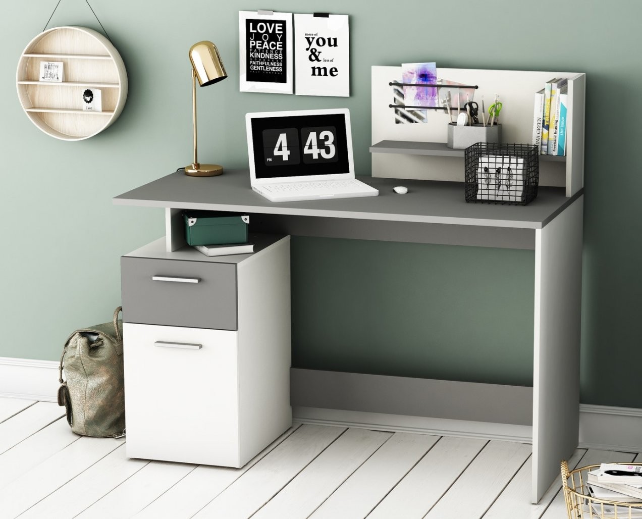 Pisalna miza PLATON 182294 v beli in sivi barvi je idealna izbira za vsak delovni prostor. Njena kompaktna zasnova in kakovostni materiali zagotavljajo dolgotrajno uporabo.