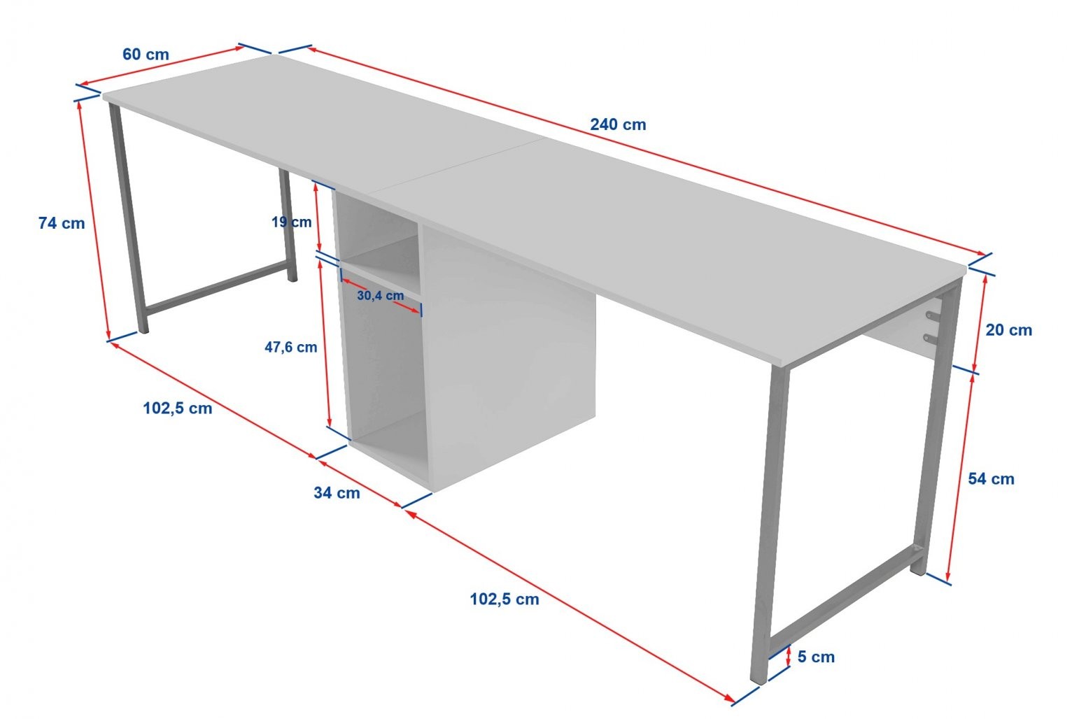 S širino 240 cm in številnimi policami ta pisalna miza zagotavlja dovolj prostora za vse vaše študijske potrebščine. Srednja polica s širino 34 cm in višino 50 cm ponuja dodatno shrambo za knjige, zvezke in drugo. Poslovite se od nereda in pozdravite organizacijo z našo študijsko mizo.