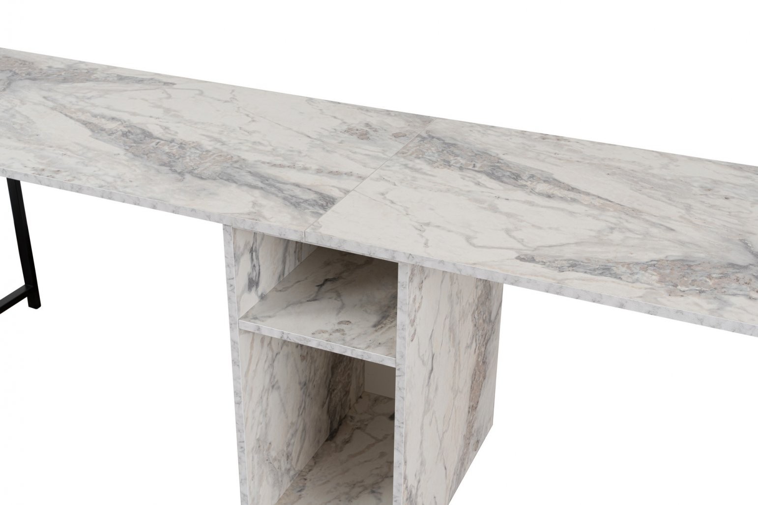 S številnimi policami in srednjo polico za enostaven dostop do najpogosteje uporabljenih predmetov vam bo ta pisalna miza pomagala ostati organizirani in osredotočeni na delo. Elegantna barvna kombinacija frezije in črne barve doda vašemu prostoru osebnost, zato bo pisalna miza predstavljala poseben kos v vsaki sobi.