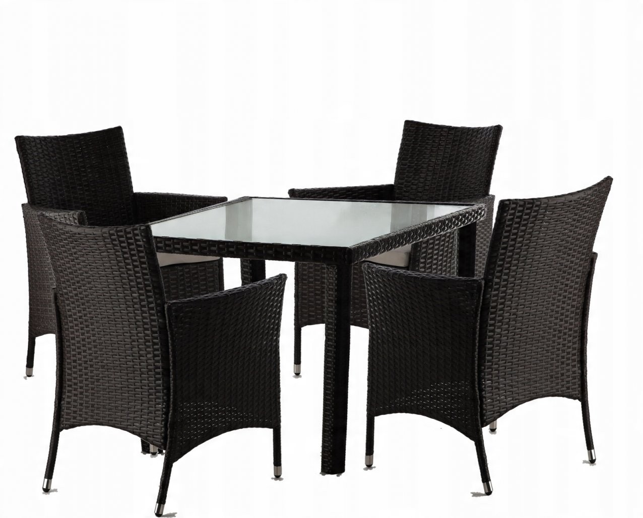 Komplet sestavljajo miza in štirje stoli, zato je primeren za vsakodnevno uporabo ter manjša druženja. Prašno barvano jekleno ogrodje prispeva k odpornosti proti koroziji, blazine iz poliestra pa dopolnjujejo udobje sedenja.