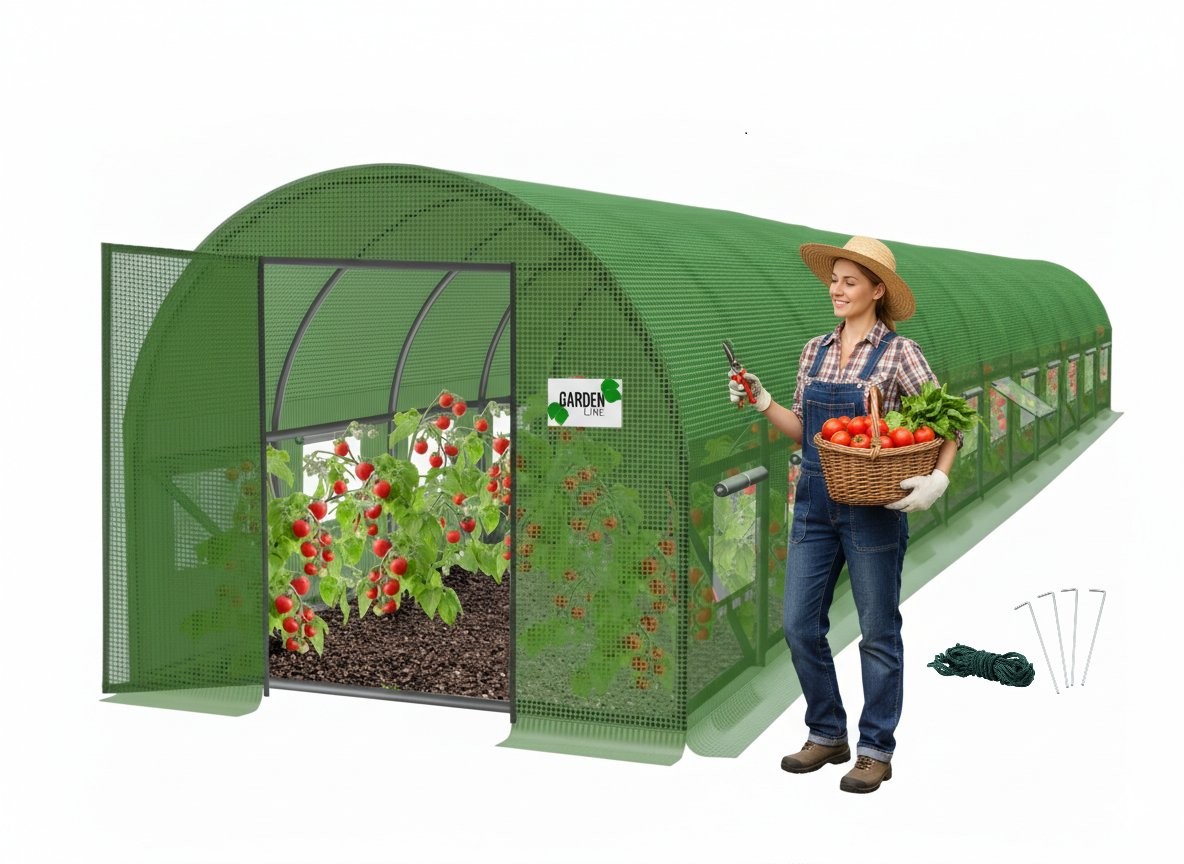 Dvanajstsegmentna zasnova ponuja še več uporabne površine. Vrata na tečajih omogočajo priročnejši vstop in izstop. Večja dolžina je primerna za obsežnejše vrtnarske postavitve.