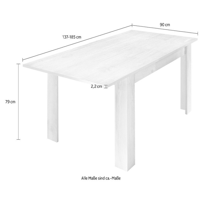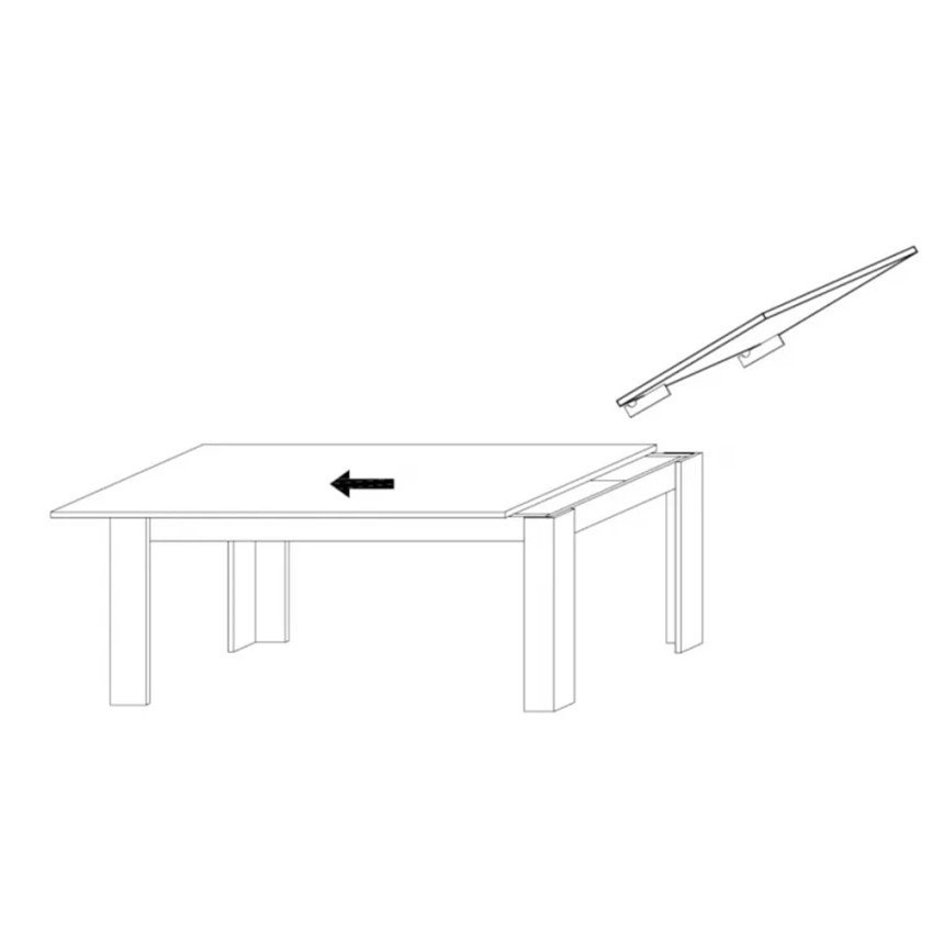 Ta prefinjena miza združuje funkcionalnost in estetski videz. Ko je zaprta, meri 137x90 cm, kar je idealno za vsakodnevne družinske obroke. Ob potrebi jo lahko enostavno podaljšate na 185 cm z uporabo dodatne plošče, ki je priročno shranjena pod mizno površino.