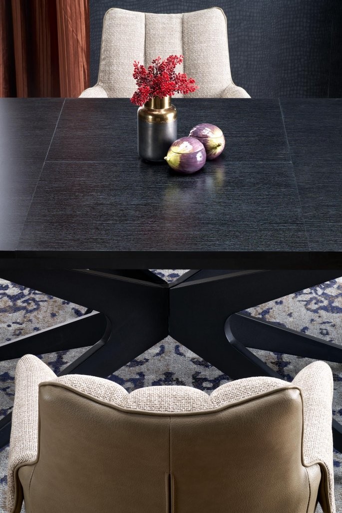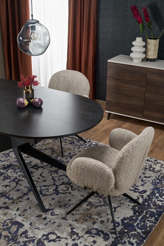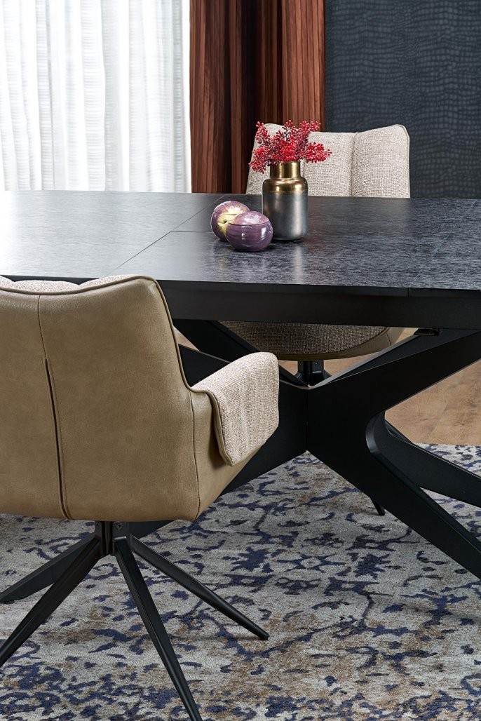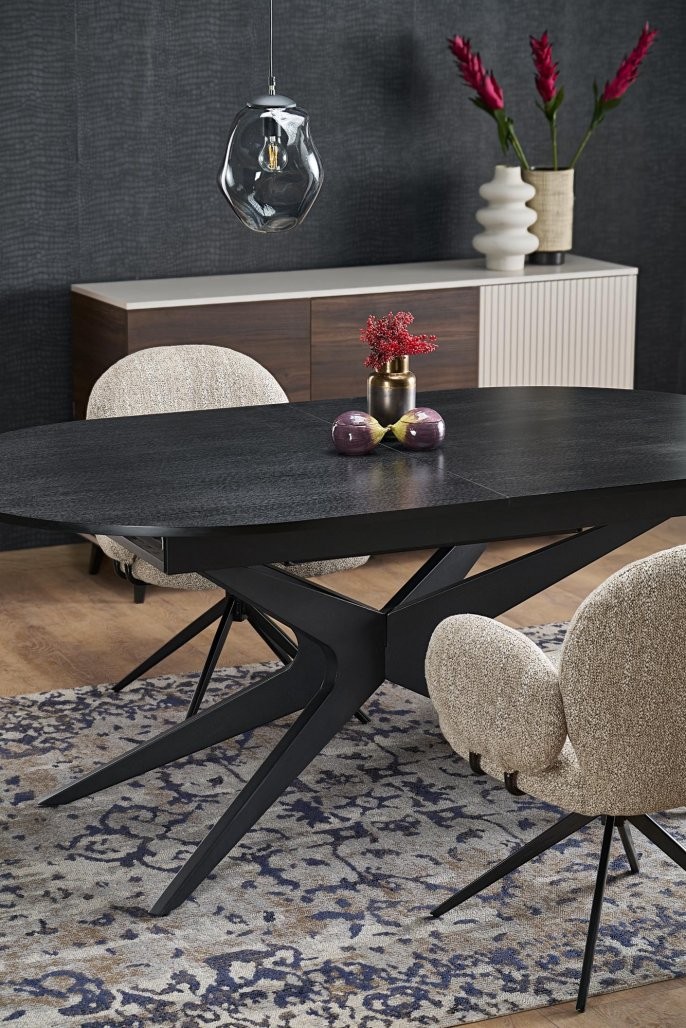 Miza se ponaša z inovativnim raztegljivim mehanizmom, ki omogoča enostavno podaljšanje dolžine iz 180 cm na 240 cm, kar vam daje izjemno prilagodljivost. Izdelana je iz visokokakovostnih materialov, kot sta laminiran MDF z melaminom za mizno ploščo, ki zagotavlja trpežnost in odpornost na praske, in prašno lakirano jeklo za stabilne noge. Ta kombinacija materialov in črne barve prinaša sodoben in nevtralen videz, ki se odlično ujema z različnimi stili notranje opreme.