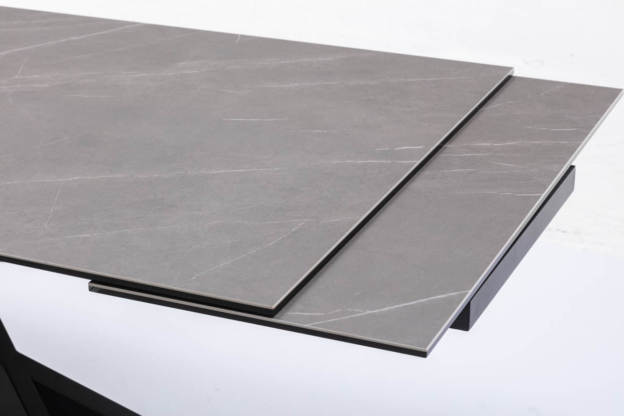 Velika in sodobna jedilna miza BENELI je na voljo v kombinaciji temno sive in črne barve, ki se bo odlično podala v vsak jedilni prostor, ki potrebuje spremembo. Miza se lahko raztegne iz 180 cm na 260 cm, kar pomeni, da boste lahko v vaš dom povabili več prijateljev in imeli večja druženja kot do sedaj.