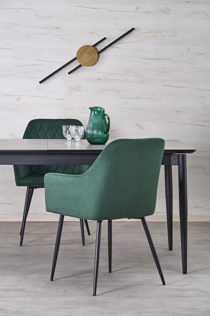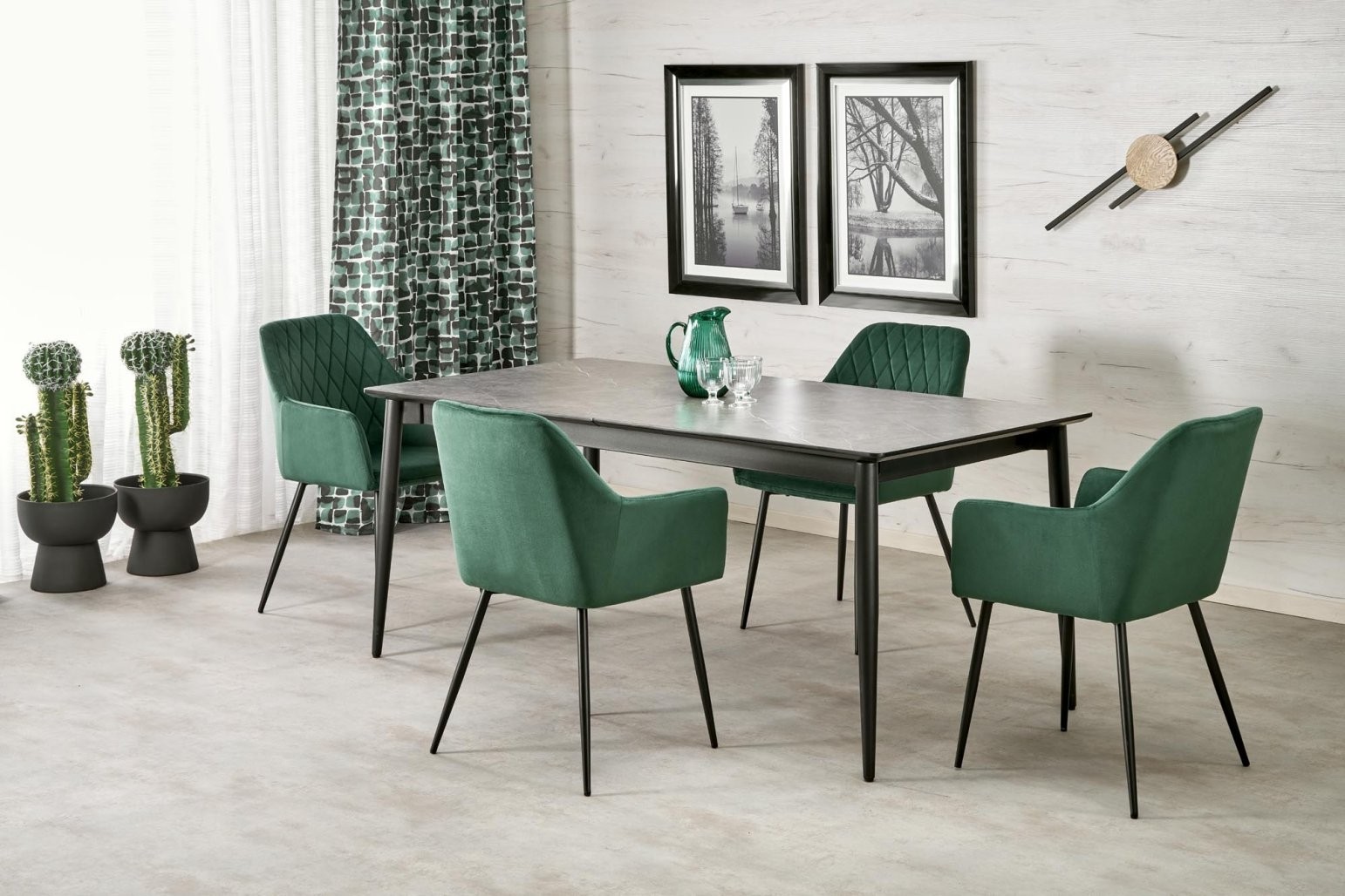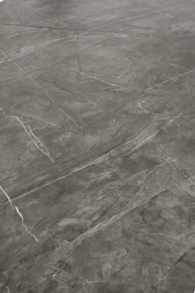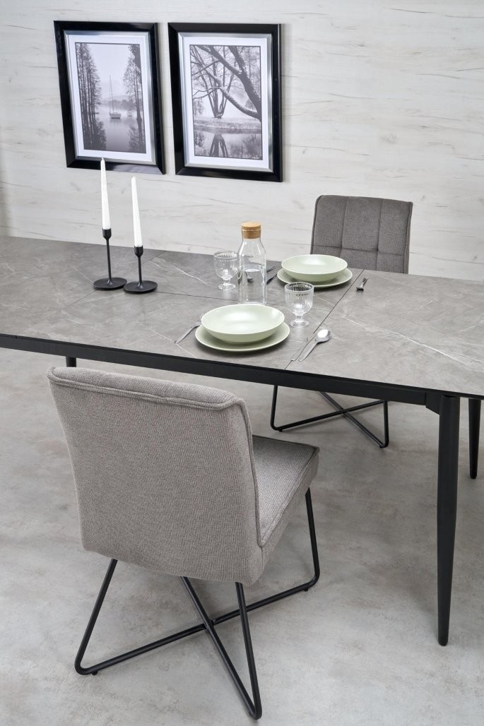 Raztegljiva jedilna miza Bralon s površino iz sivega oreha in črnim kovinskim okvirjem. Dolžina se prilagodi potrebam, primerna za 10 oseb. Odlično se ujema z modernim slogom.
