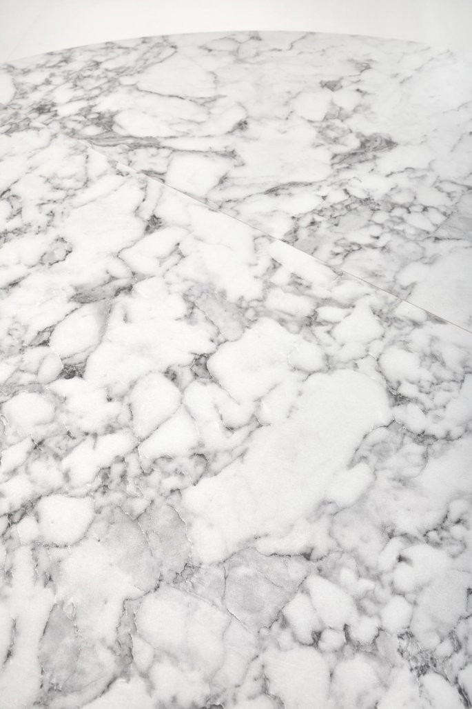 Raztegljiva jedilna miza Bremok s svojo marmorno površino in belim okvirjem dodaja pridih razkošja. Njena vsestranskost omogoča uporabo za manjša kosila ali večja srečanja, zahvaljujoč možnostim raztezanja.
