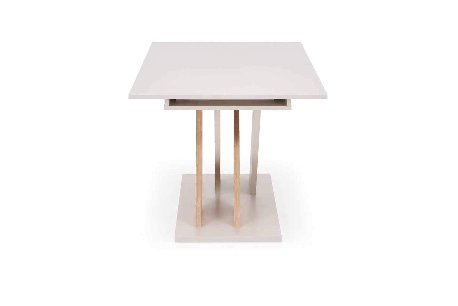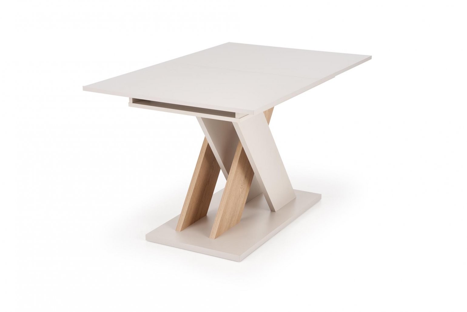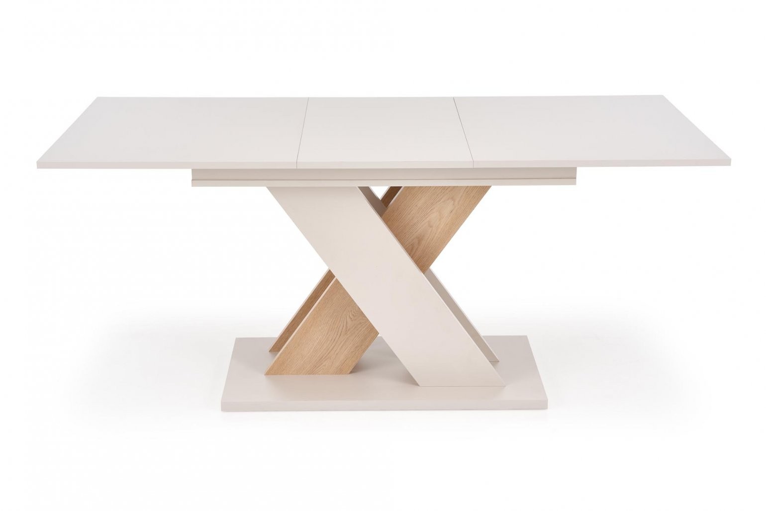 Raztegljiva jedilna miza Camir prinaša popolno kombinacijo funkcionalnosti in modernega videza v vaš dom. Izdelana je iz trpežne laminirane iverne plošče in se ponaša z elegantno barvno kombinacijo kašmirja in cremona hrasta, ki se zlahka vključi v različne notranje stile. Ta miza je idealna rešitev za tiste, ki cenijo prilagodljivost in potrebujejo prostor za več gostov ob posebnih priložnostih.