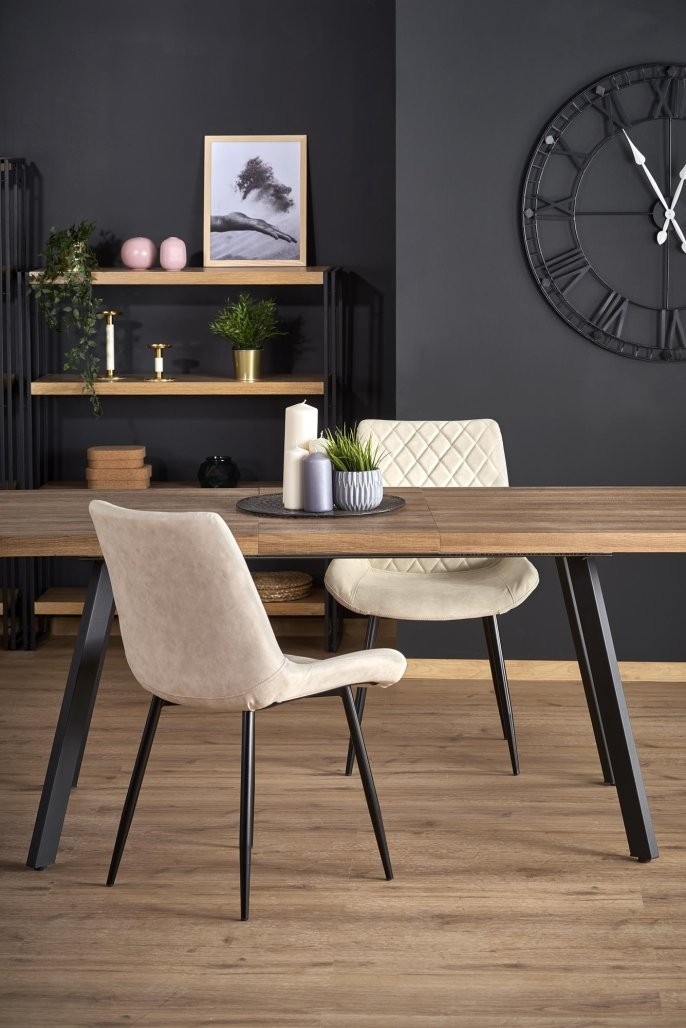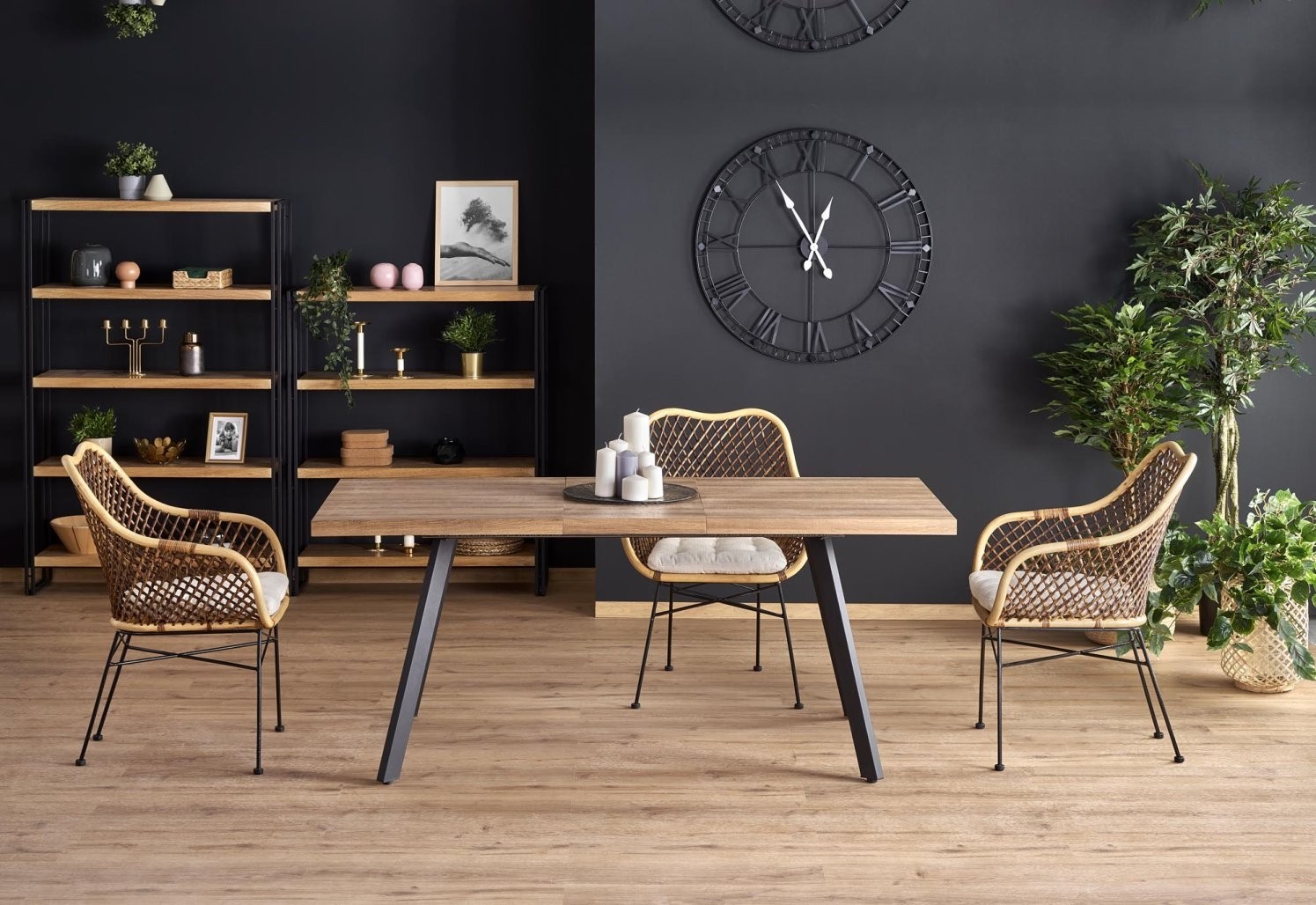 Jedilna miza Celin v industrijskem slogu prinaša robustnost MDF plošče v orehu in trdne črne noge. Raztegljiva zasnova omogoča prostor za 8 oseb, kar je idealno za druženja ali vsakdanje obroke.