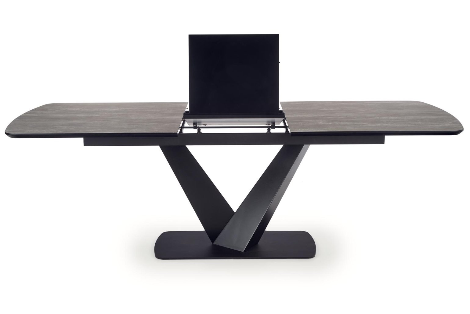 Raztegljiva jedilna miza Ealon z dolžino od 180 do 230 cm, črna mat površina z dodatno zaščito HPL, kovinske črne noge. Popolna za sodobne jedilnice s pridihom elegance.