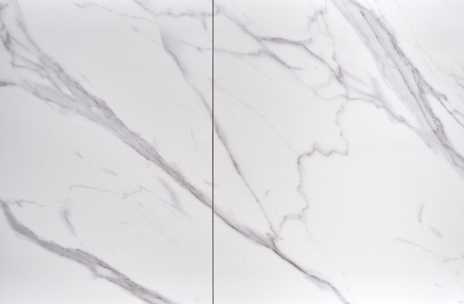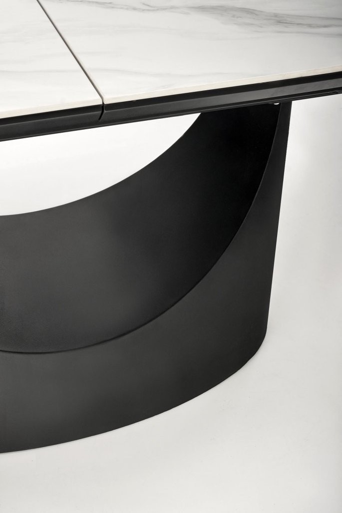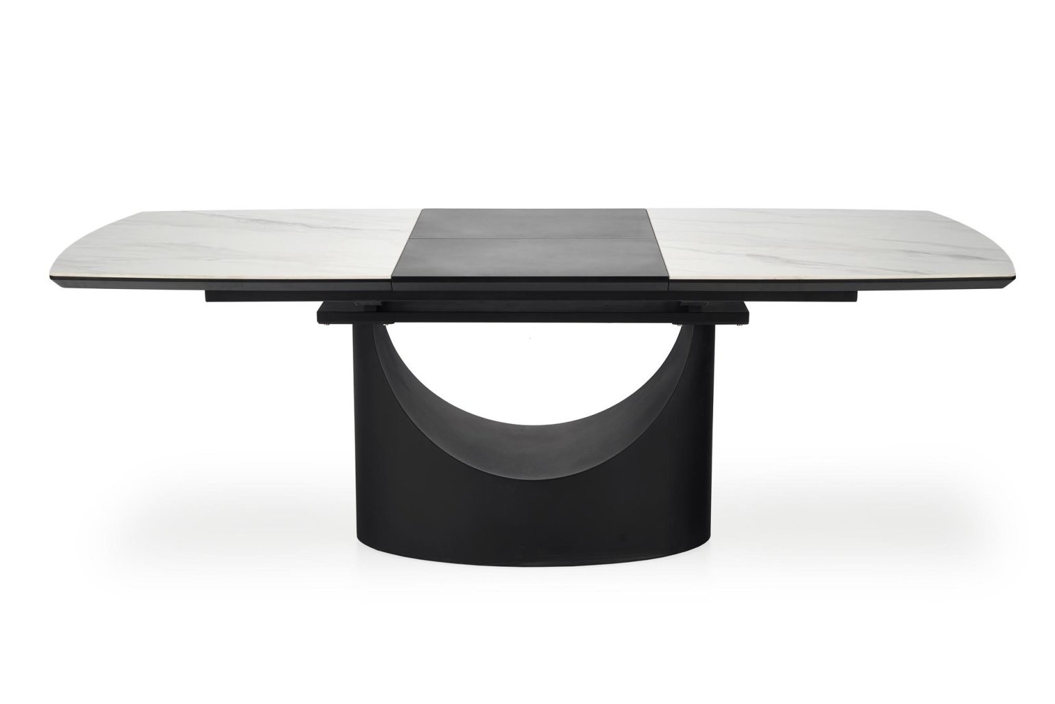 Raztegljiva jedilna miza Felis s keramično površino v črnem marmorju in možnostjo razširitve je idealna izbira za moderne in prostorne jedilnice.