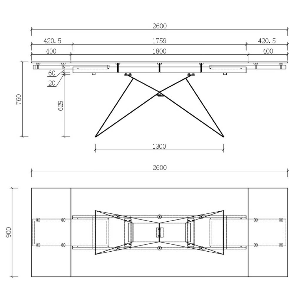 Miza je opremljena z dvema 40 cm podaljškoma, ki se s preprostim mehanizmom raztegneta iz stranic mize.