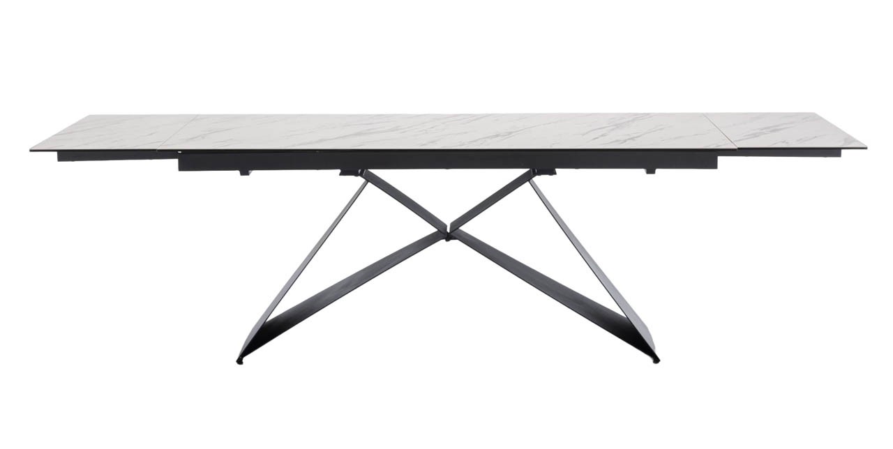 Velika in elegantna jedilna miza GEOS je na voljo v beli barvi, ki bo v vaš dom prinesla svežino. Celoten dizajn mize in njenega podnožja je narejen moderno in vas bo navdušil že ob prvem pogledu. Maksimalna obremenitev mize znaša 50kg. Podnožje je narejeno iz kovine in prašno lakirano za boljšo zaščito.