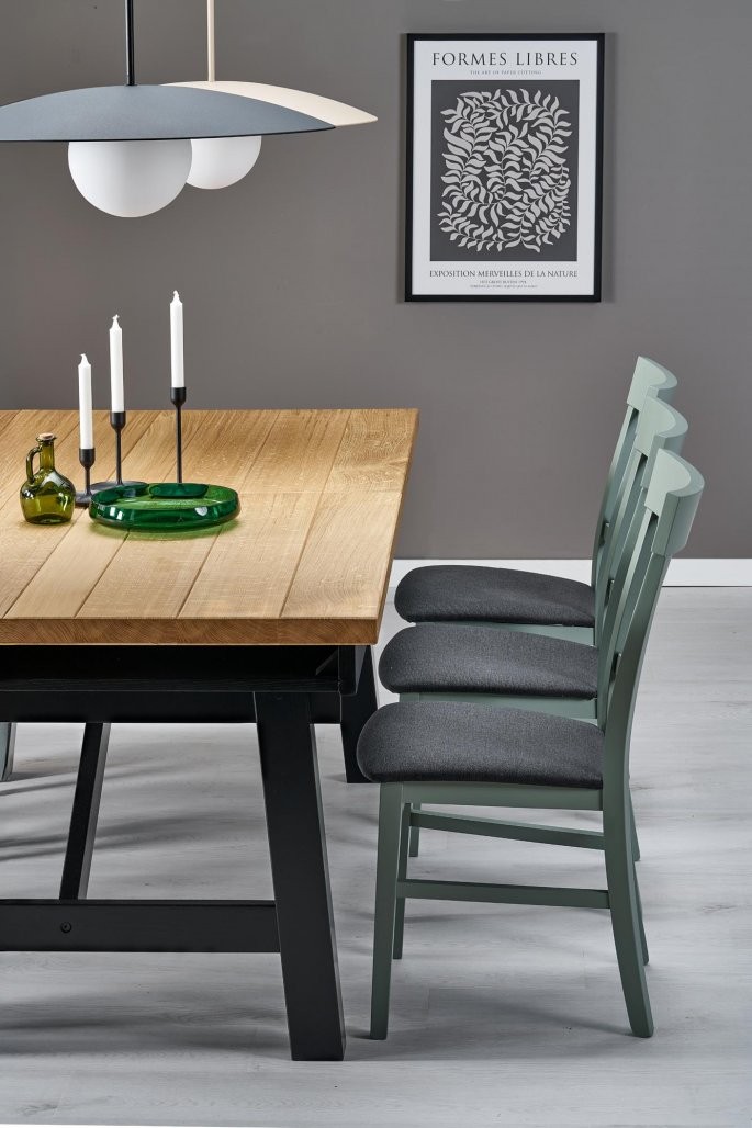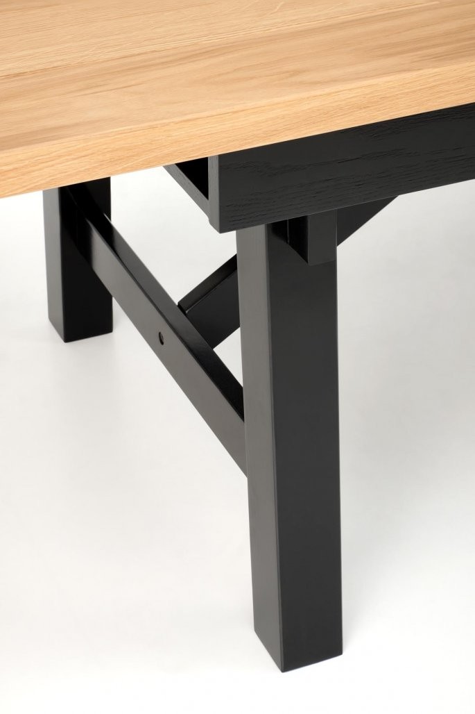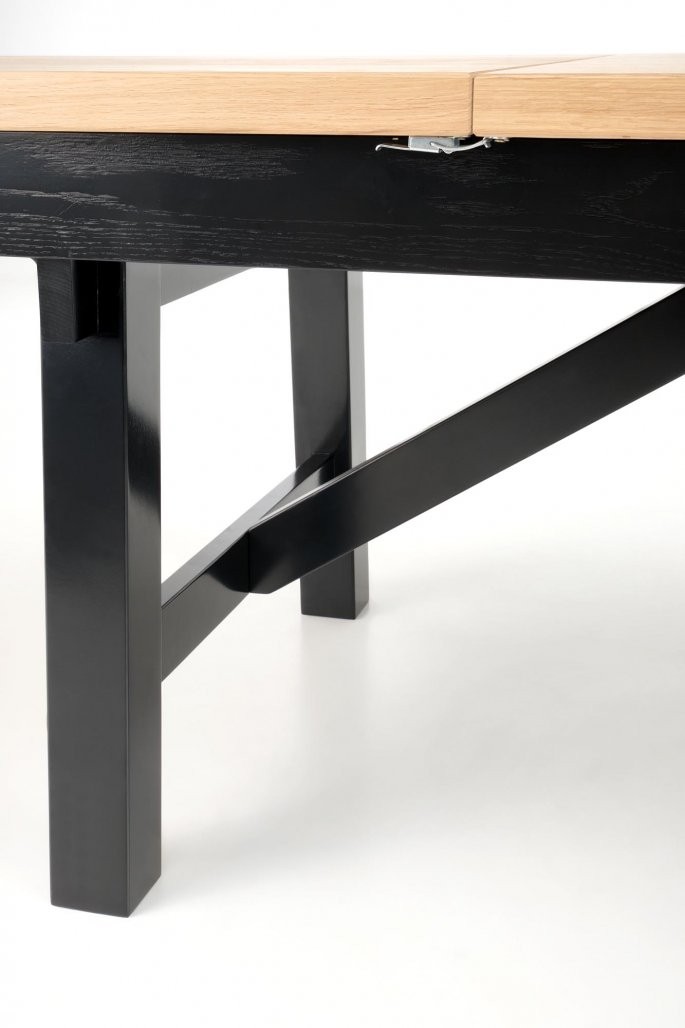 Miza Helin je raztegljiva, kar omogoča enostavno prilagajanje dolžine od 200 cm do impresivnih 280 cm, kar zagotavlja dovolj prostora za vse vaše goste. Izdelana je iz visokokakovostnih materialov, kot sta MDF plošča z hrastovimi letvicami in masivnimi lesenimi robovi, medtem ko so noge izdelane iz masivnega bukovega lesa, kar zagotavlja izjemno robustnost in dolgotrajno uporabo. Njena nosilnost je 60 kg, kar potrjuje njeno trpežnost za vsakodnevno uporabo.