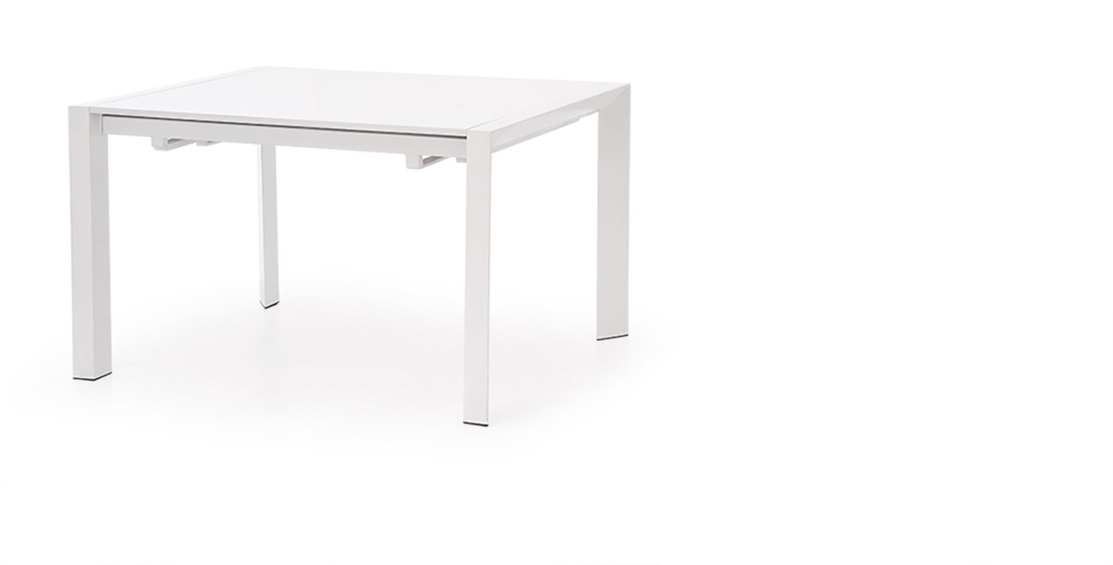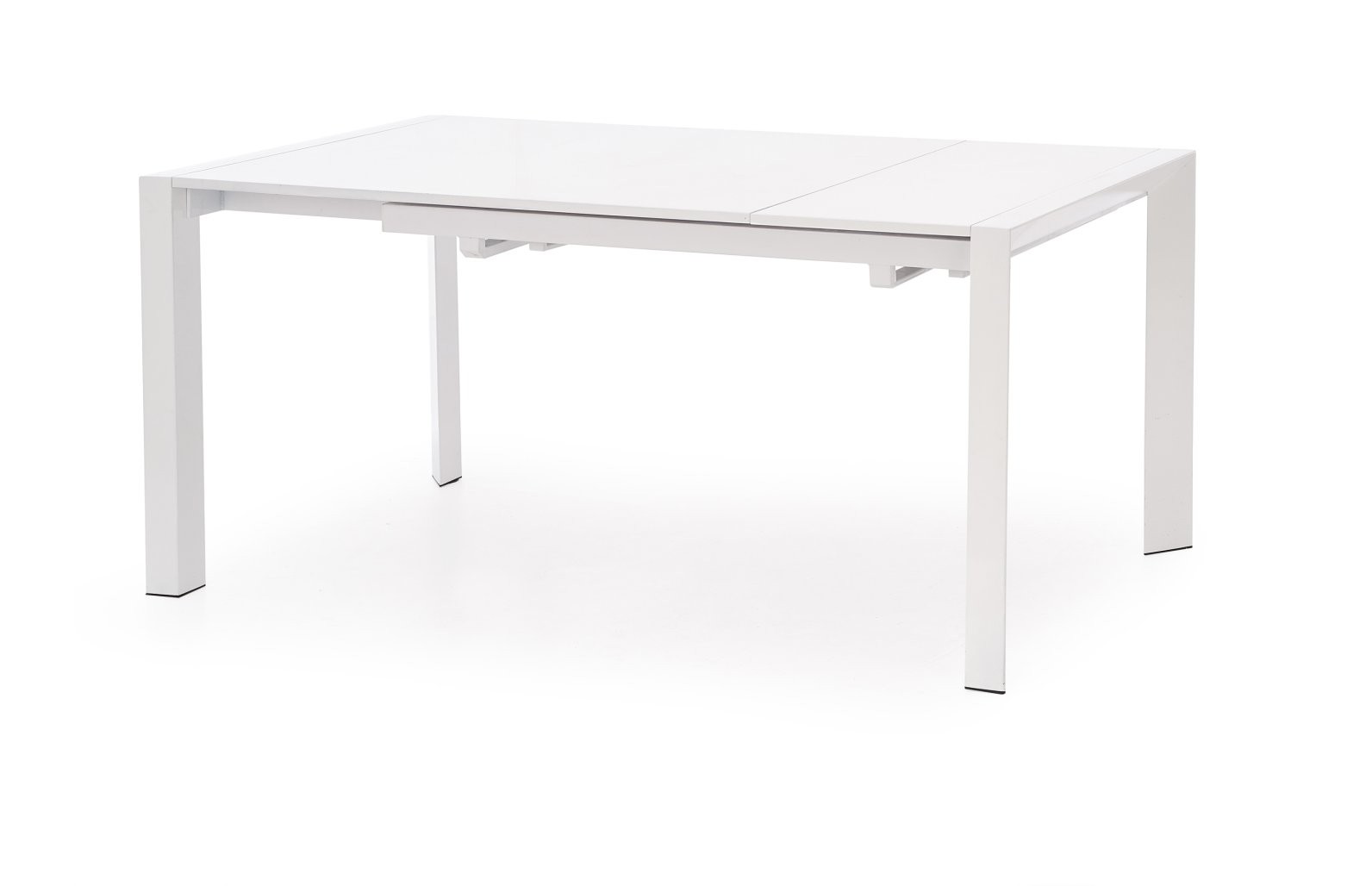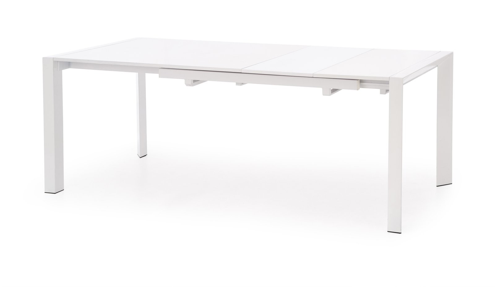 Raztegljiva jedilna miza Ilinor z dimenzijami 130-250 cm. Moderna oblika iz lakiranega MDF-a in barvanega jekla, primerna za 6 do 10 oseb.