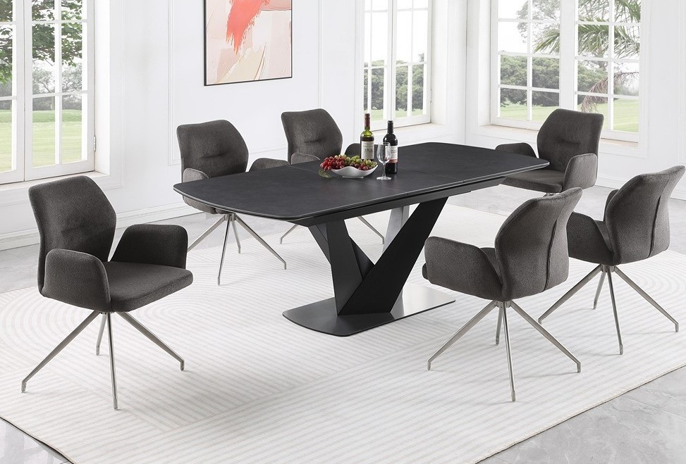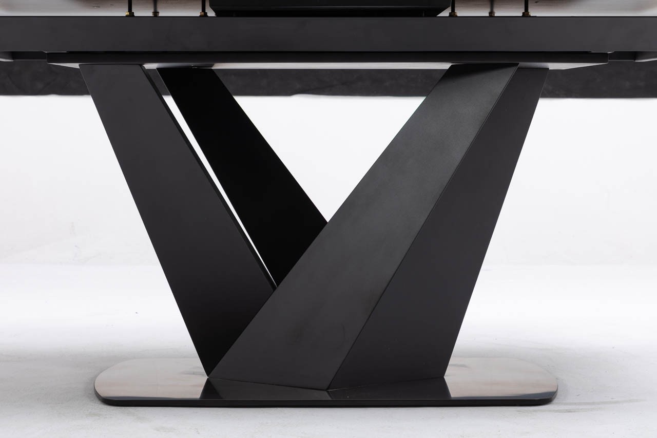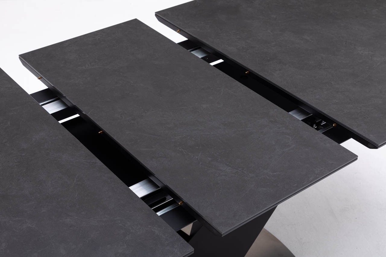 Moderna jedilna miza LAVERDA vas bo navdušila že na prvi pogled. Miza se lahko raztegne, saj ima na sredini podaljšek dolg 40 cm in tako naredi prostor ob mizi za več oseb. Miza ima keramično ploščo in kovinsko podnožje. Plošča je debela 5mm in ima zaobljene robove, ki dajejo prijetnejši izgled. Miza se raztegne od 160 do 200 cm z mehanizmom metuljčka. Maksimalna nosilnost mize je 50 kg.