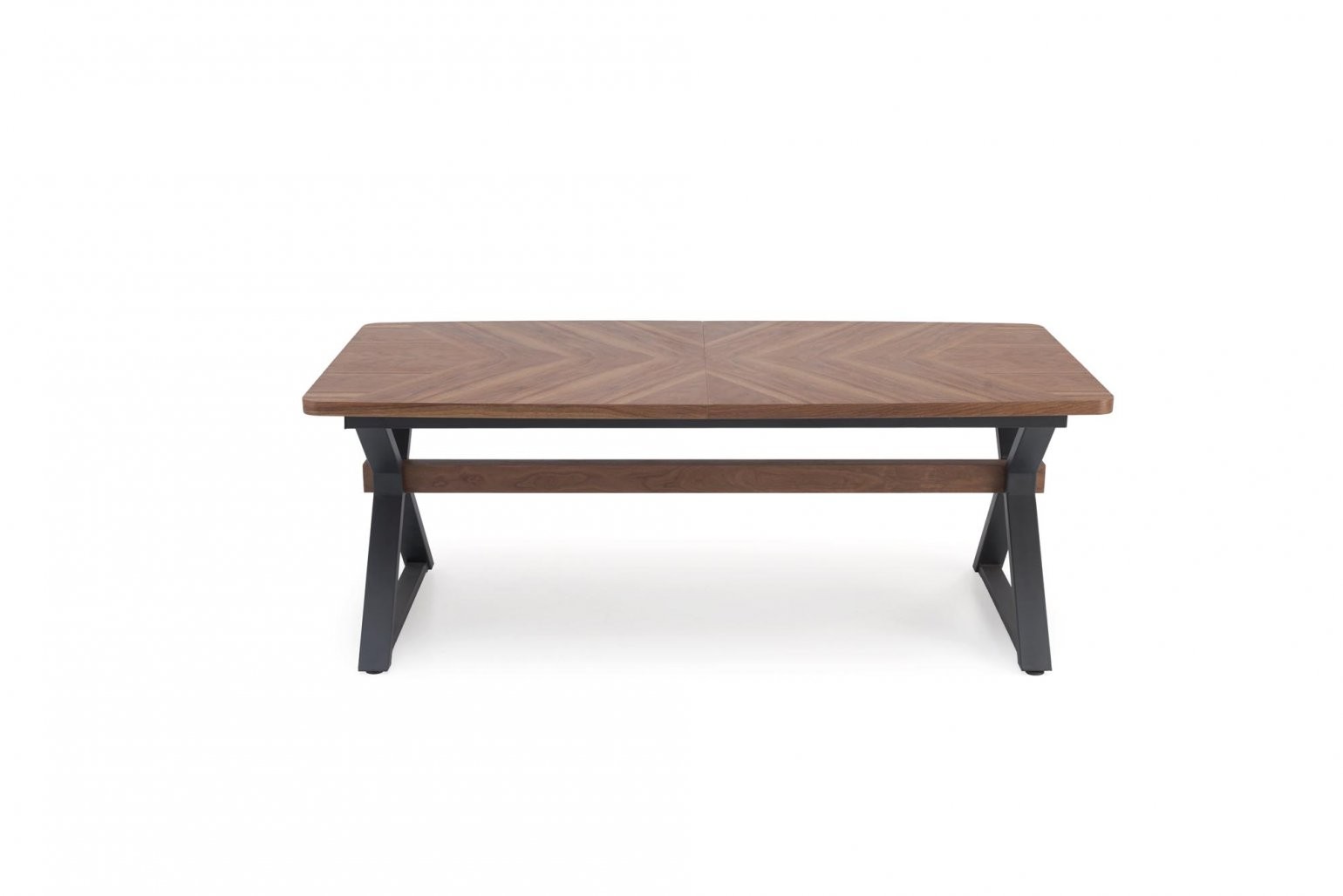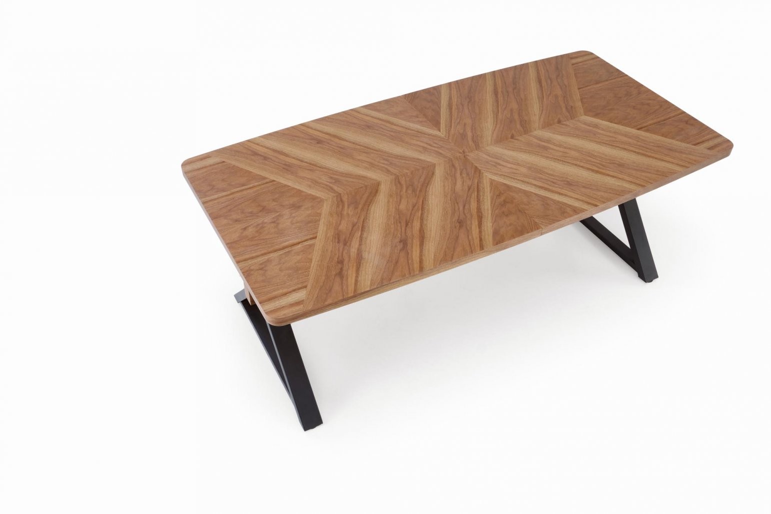 Izdelana je iz trpežnih materialov - MDF-a z naravnim furnirjem in prašno lakiranega jekla za noge, kar zagotavlja dolgo življenjsko dobo in stabilnost. Njena ključna prednost je raztegljiva funkcija, ki omogoča podaljšanje iz 200 cm na impresivnih 350 cm, kar nudi udoben prostor za večje število gostov.