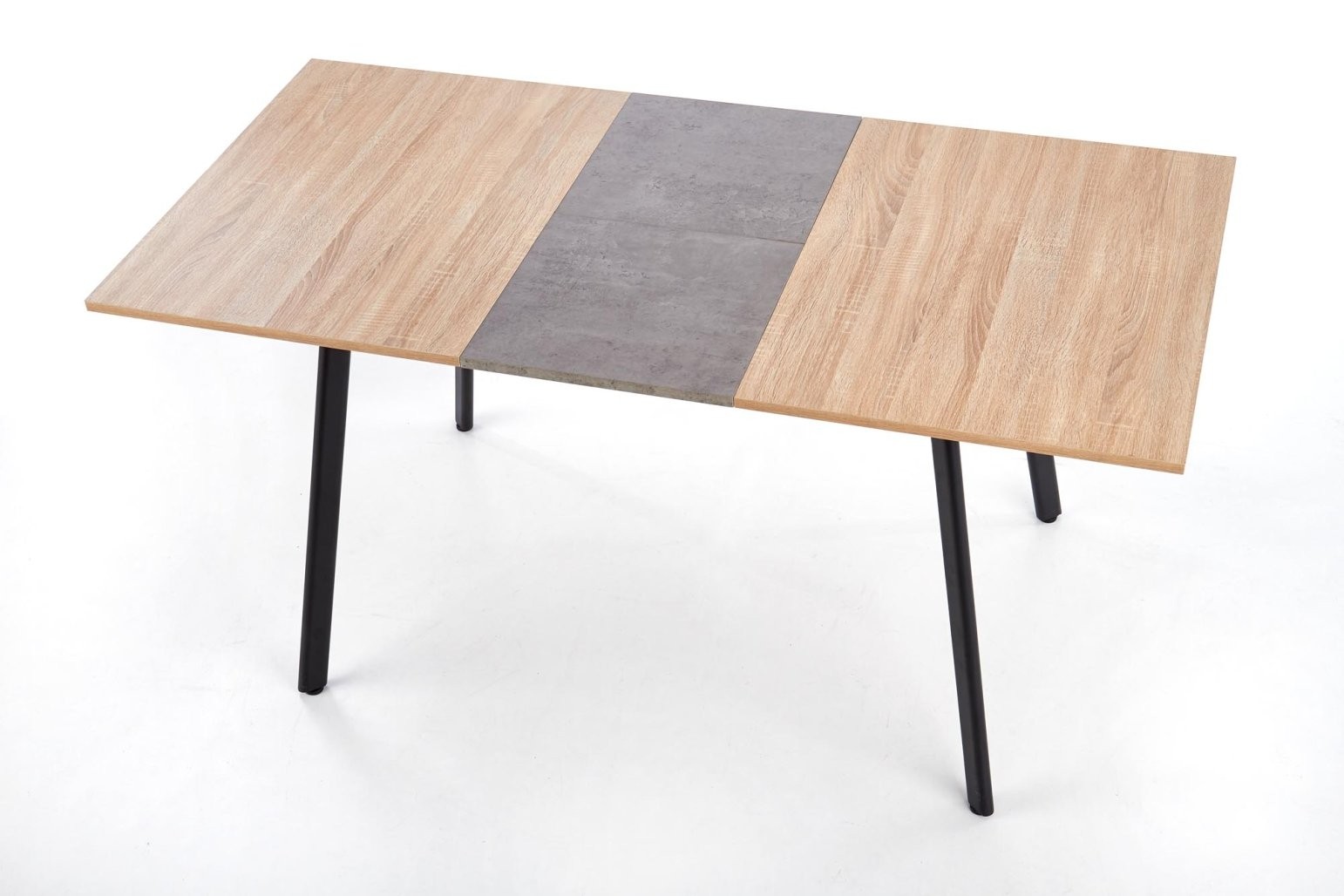 Raztegljiva jedilna miza Liora združuje praktičnost in sodoben dizajn. Z MDF ploščo v sonoma hrastu in črnimi kovinskimi nogami je idealna izbira za manjše ali večje obroke za 4–6 oseb.