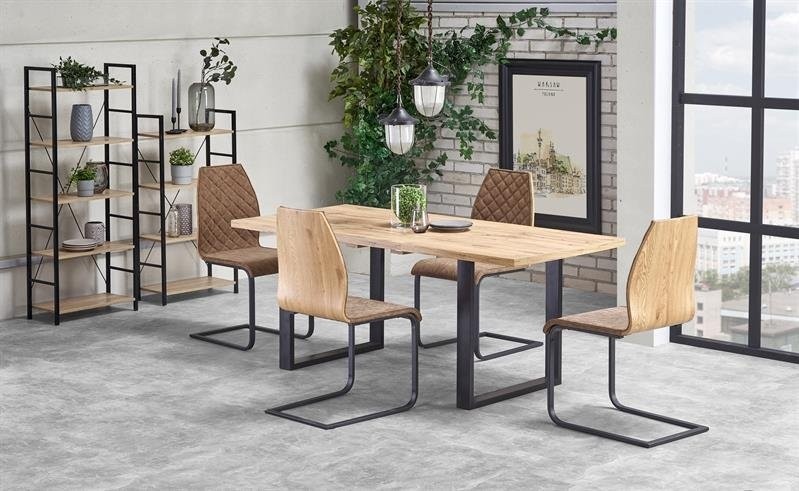 Raztegljiva jedilna miza Melset ponuja industrijski videz z elegantno kombinacijo votan hrasta in črne barve. Enostavno prilagodite dolžino, da zagotovite prostor za do 8 oseb.