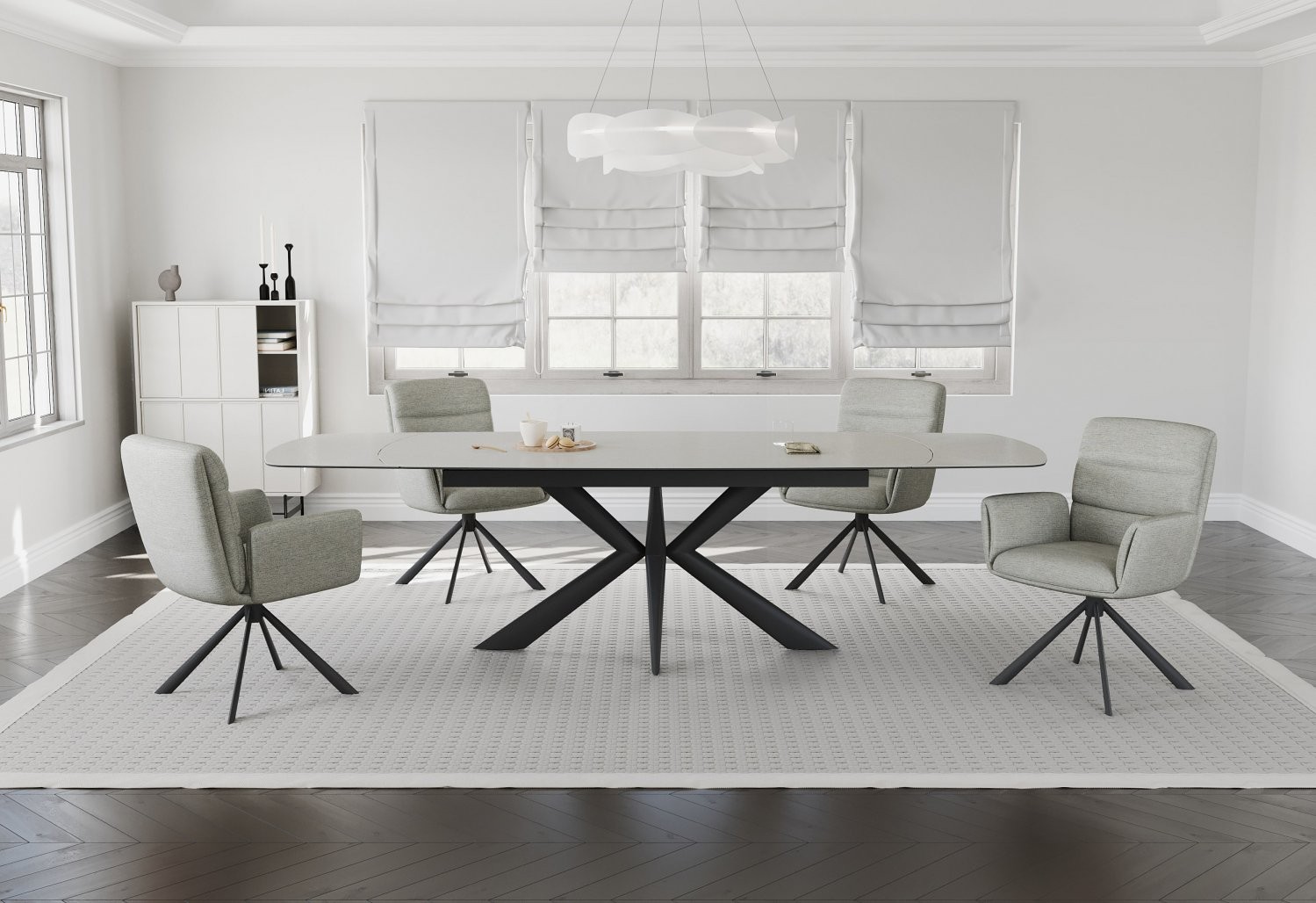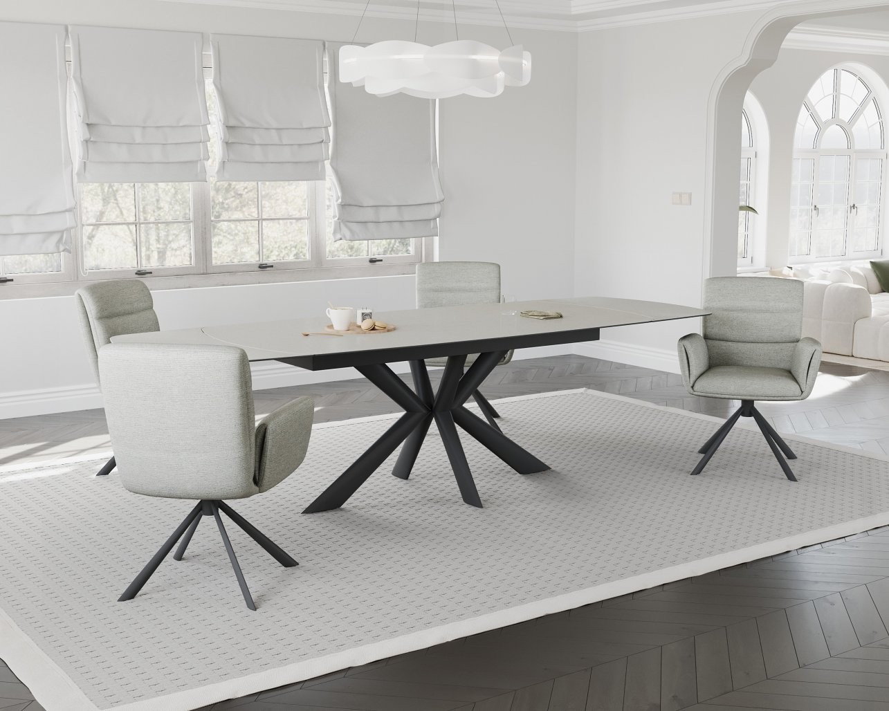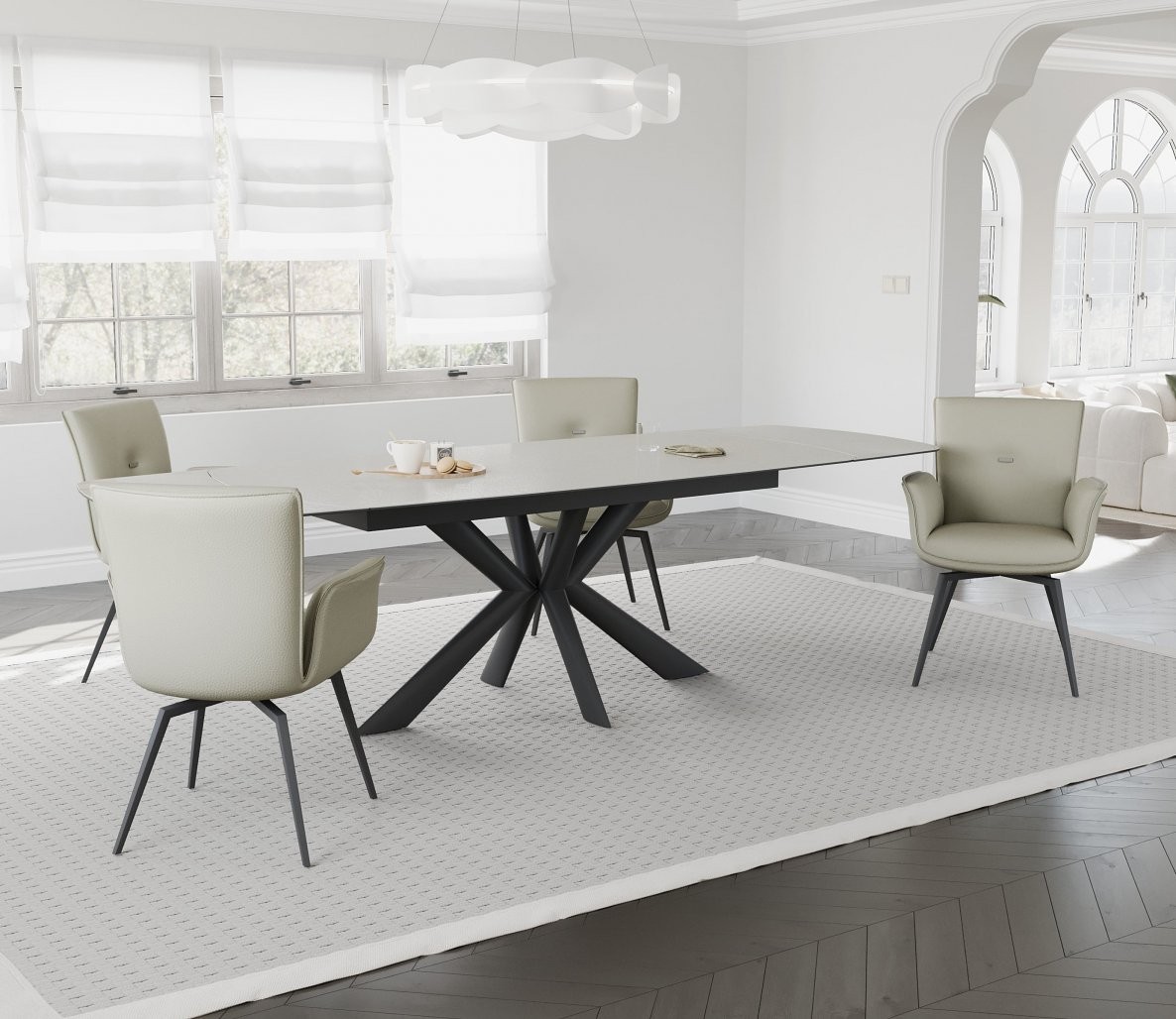 Raztegljiva jedilna miza OBAN je odlična izbira za vsako sodobno jedilnico. Zaradi svoje prilagodljive dolžine se popolnoma prilagodi številu gostov, kakovostni materiali pa zagotavljajo dolgo življenjsko dobo in eleganten videz.