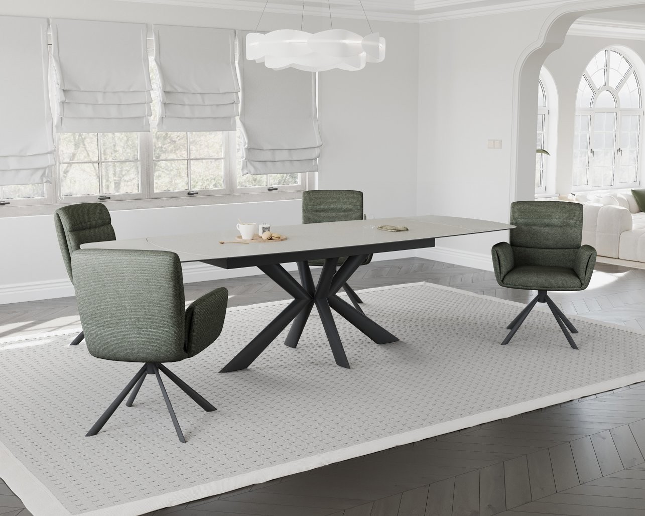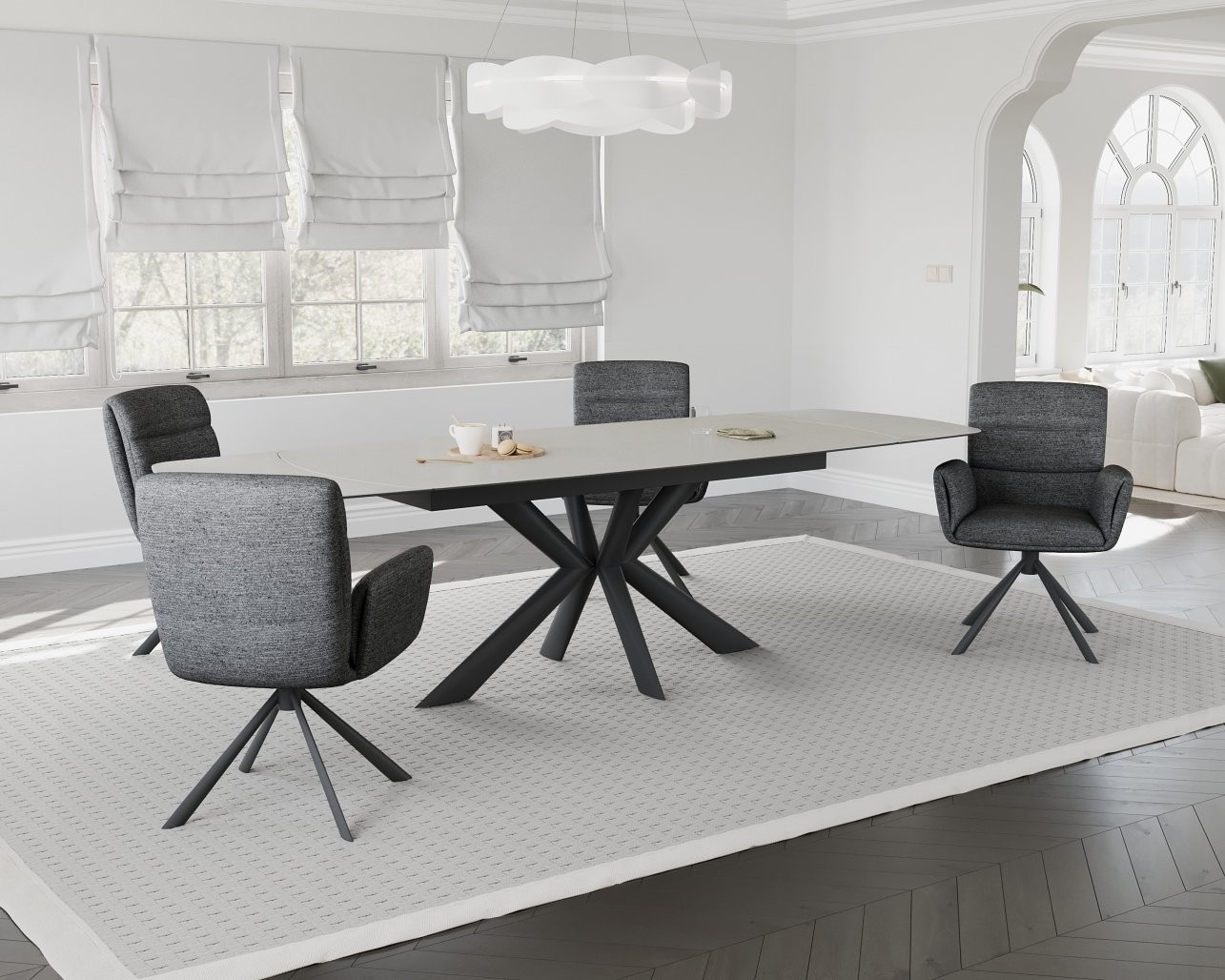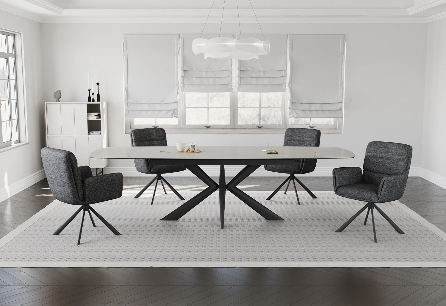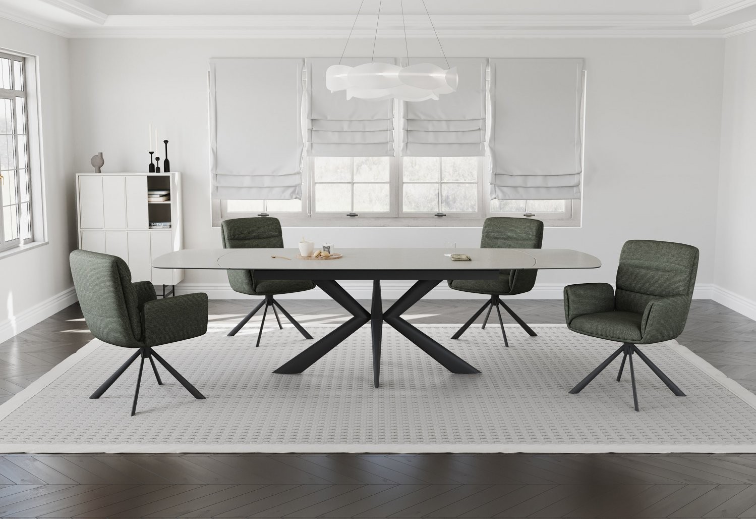 Raztegljiva jedilna miza OBAN je odlična izbira za vsako sodobno jedilnico. Zaradi svoje prilagodljive dolžine se popolnoma prilagodi številu gostov, kakovostni materiali pa zagotavljajo dolgo življenjsko dobo in eleganten videz.