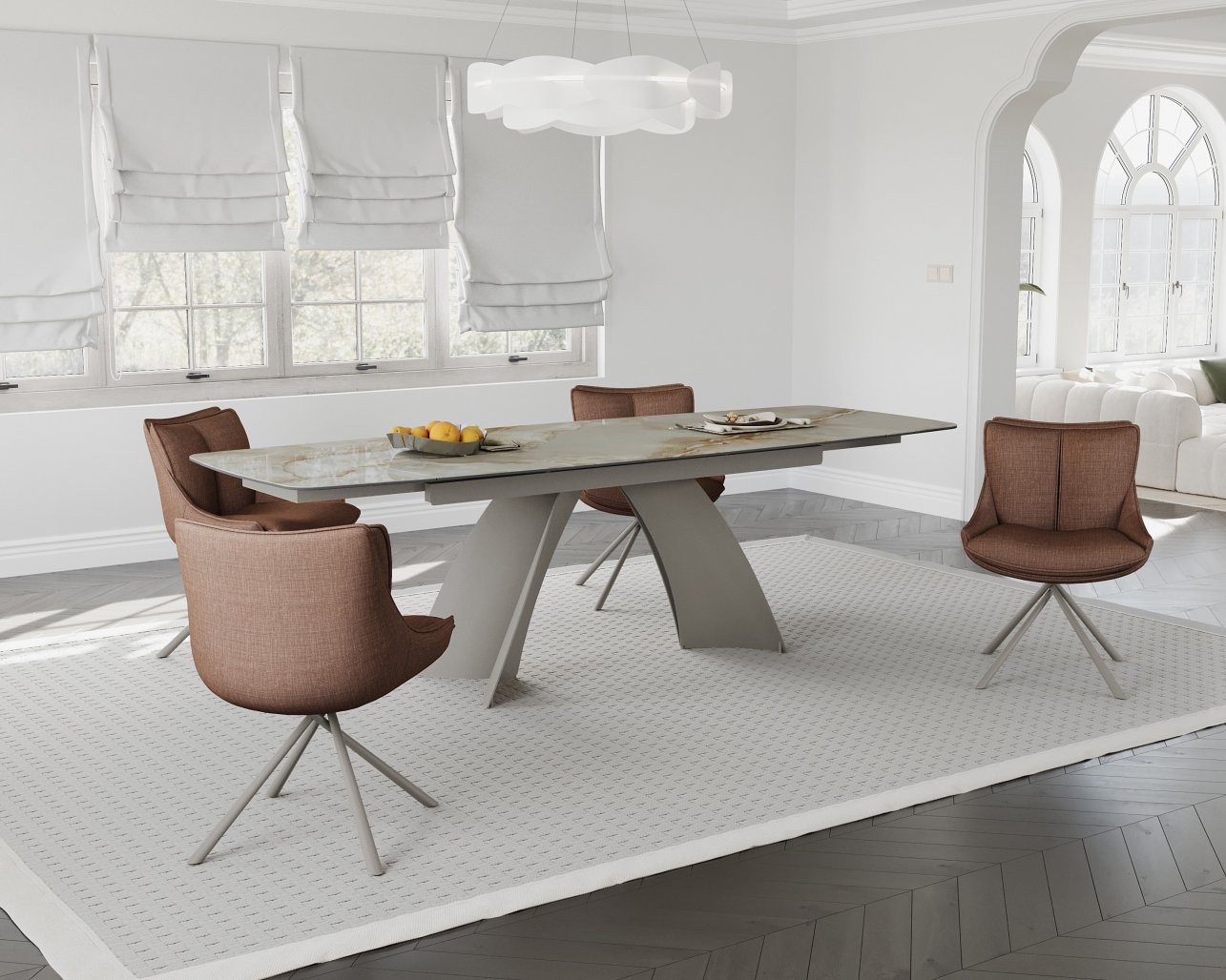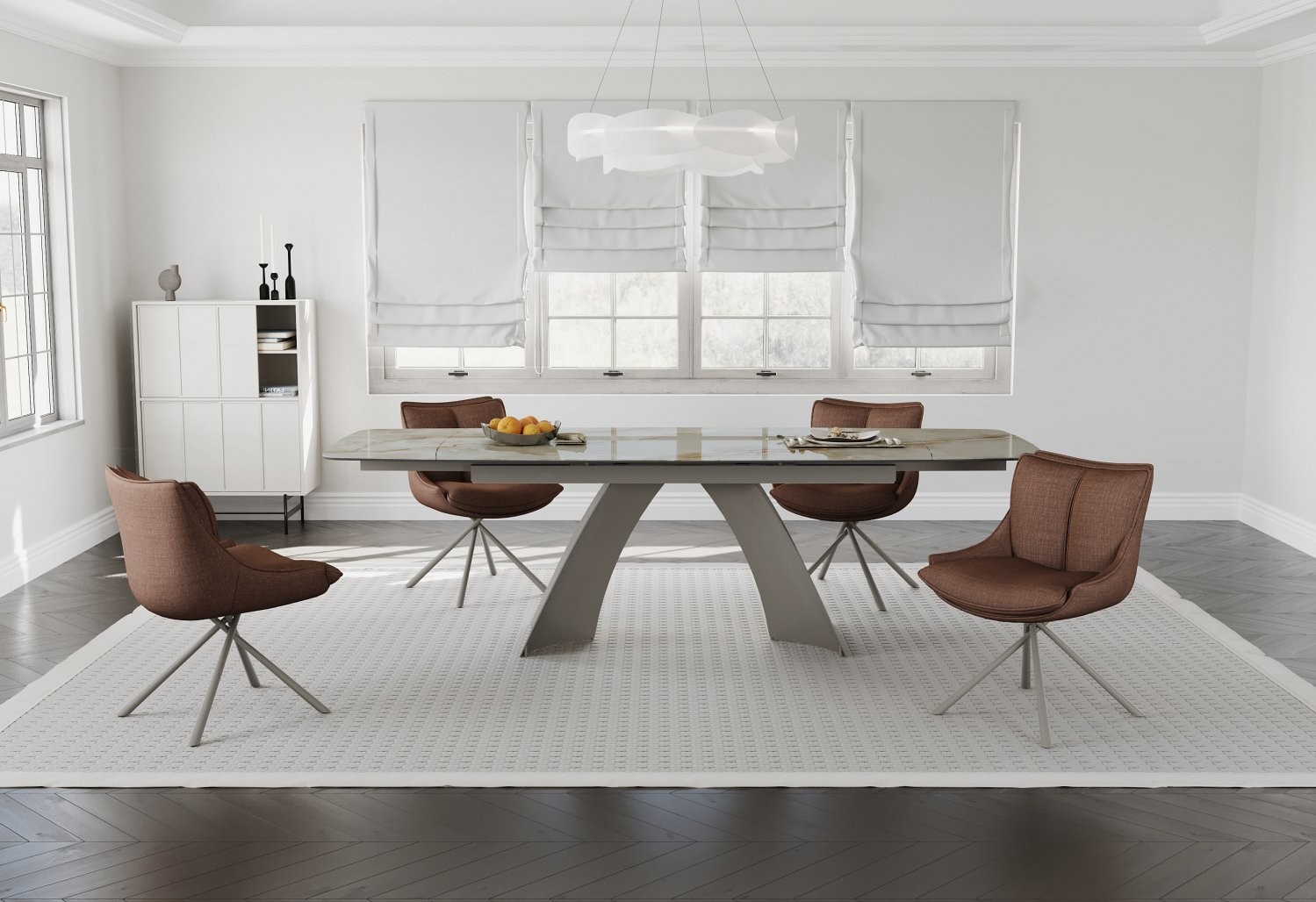 Raztegljiva jedilna miza TOKYO (rjavi marmor) je popolna izbira za vaš dom, saj združuje eleganco in funkcionalnost. Prilagodite dolžino mize vašim potrebam in uživajte v izjemni kakovosti materialov ter modernem videzu, ki bo navdušil vaše goste.