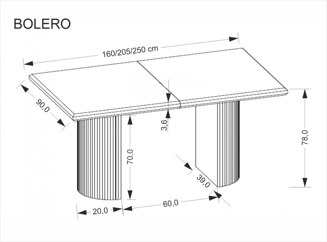 Ena izmed ključnih prednosti mize Tomin je njena raztegljivost. Z osnovno dolžino 160 cm se enostavno raztegne do 250 cm, kar omogoča hitro prilagoditev za večje število gostov. Miza je stabilna in vzdržljiva, s trdno konstrukcijo, ki zagotavlja dolgotrajno uporabo in estetski videz. Miza je na voljo v več barvnih različicah, da se popolnoma ujema z vašim notranjim prostorom.