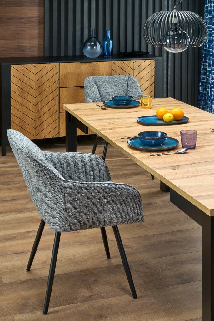 Miza je izdelana iz visokokakovostne laminirane iverne plošče, ki zagotavlja dolgo življenjsko dobo in enostavno vzdrževanje. Barvna kombinacija zgornje plošče v barvi artisan hrasta in črnih nog mizi daje sodoben in prefinjen videz, ki se bo odlično podal v različne stile notranje opreme.