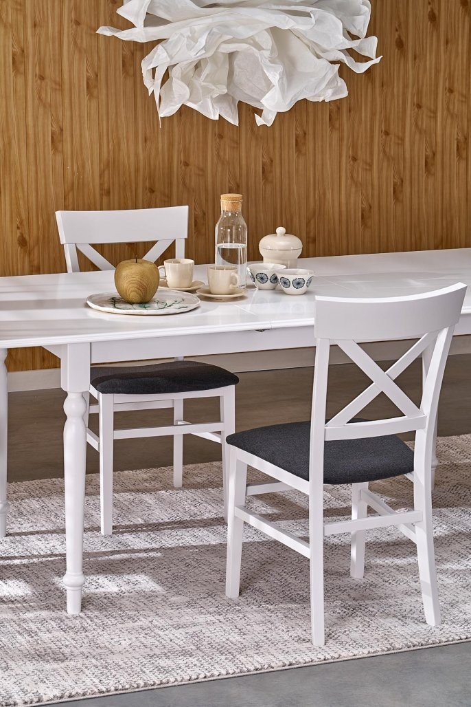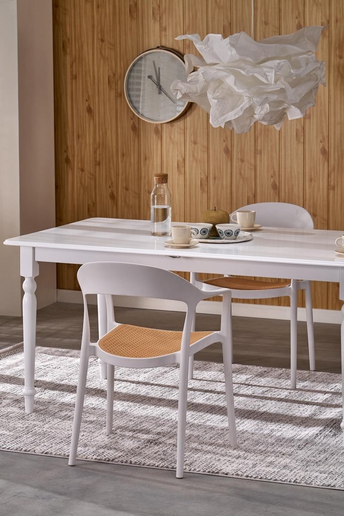 Miza je izdelana iz kombinacije lakiranega MDF in trdnega kavčukovega lesa, kar zagotavlja dolgo življenjsko dobo in trpežnost. Njena bela barva vnaša svetlobo in svežino v prostor ter se enostavno zlije z različnimi stili notranje opreme. Z mehanizmom raztegovanja se lahko njena dolžina poveča iz 160 cm na 200 cm, kar nudi izjemno funkcionalnost.