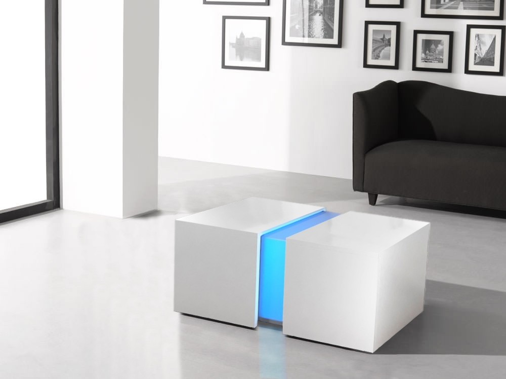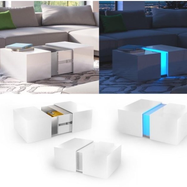 Moderna klubska mizica KEON z vključeno LED osvetlitvijo popestri vsako dnevno sobo in jo postavi v središče pozornosti. Na voljo je v beli barvi v visokem sijaju, ki optično poveča prostor in ga posvetli. Ima priročen predal za shranjevanje, kamor lahko shranite razne revije, časopise in ostale malenkosti, ter tako poskrbite za vedno čisto in prosto zgornjo površino mize, kamor lahko odložite pijačo in razne prigrizke.