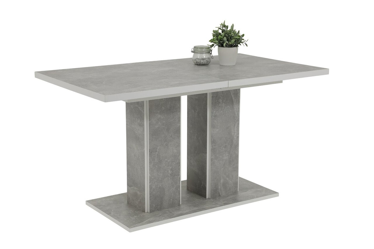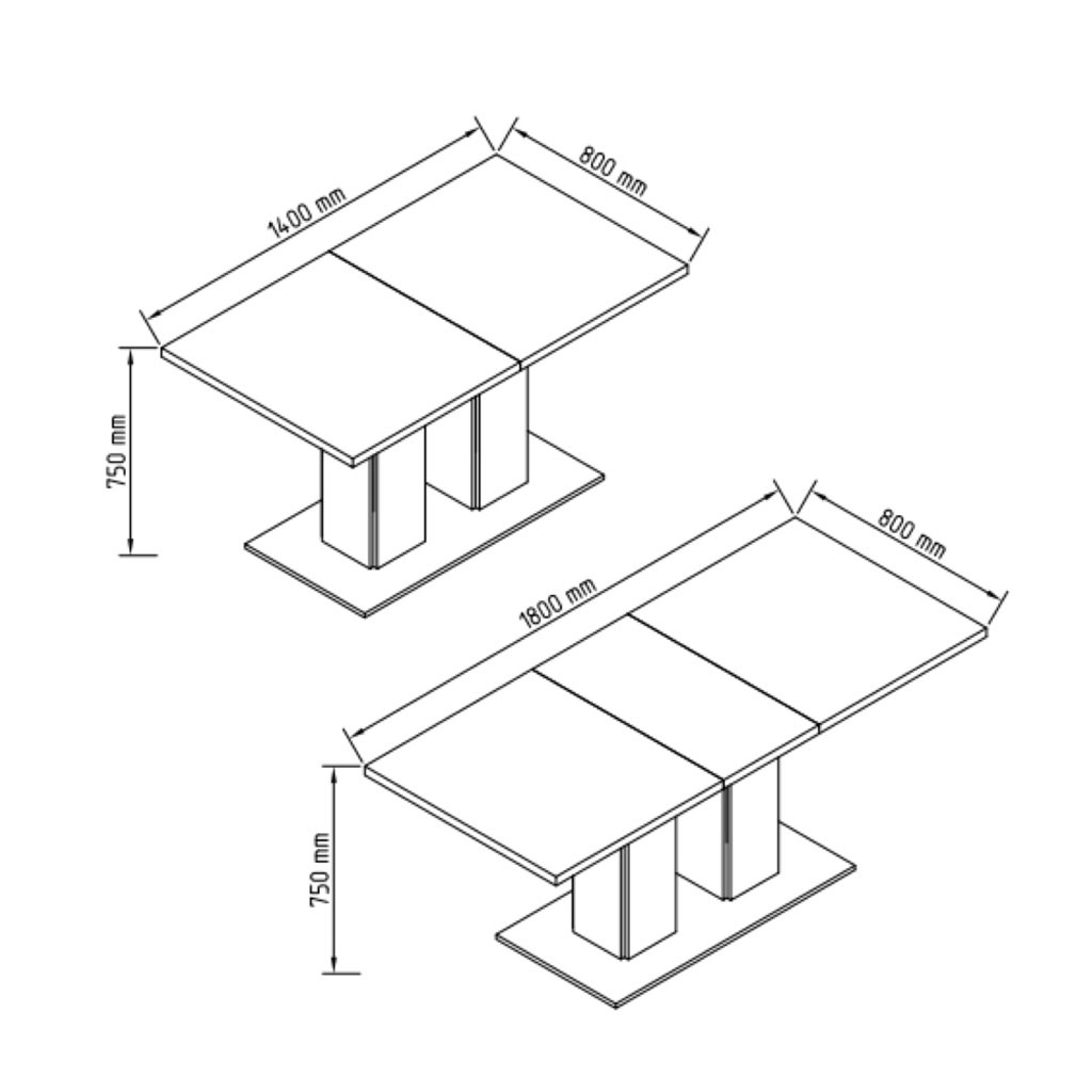 Raztegljiva jedilna miza TURIN vas bo navdušila s svojim modernim dizajnom in atraktivnim vzorcem betona. Preprost podaljšek na sredini mize jo iz 140 cm raztegne na 180 cm, tako da bodo vsi vaši gostje lahko udobno sedeli za njo in uživali med druženjem. Dodatno stabilnost mize zagotavljata dva stolpa sodobnega dizajna ki se nahajata na sredini mize, in držita namizno ploščo.