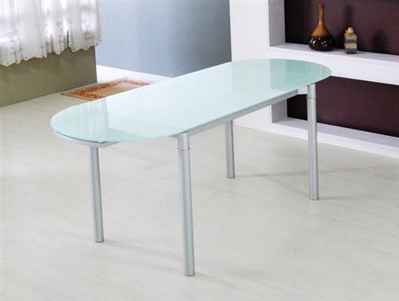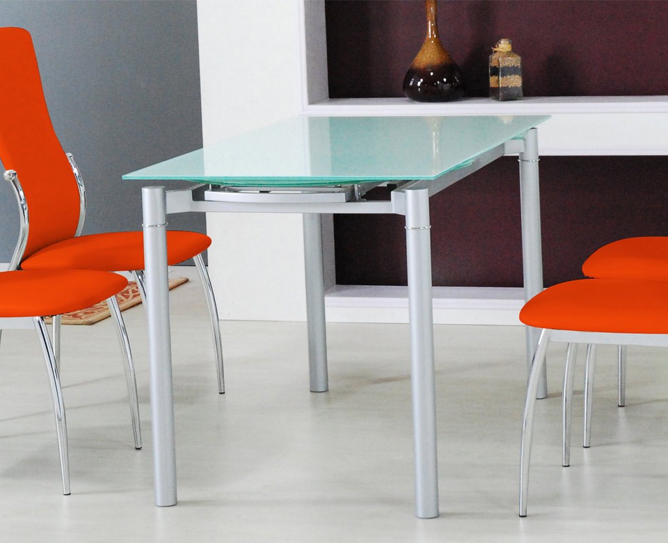 Steklena jedilna miza TL-1128 preprosto raztegljiva iz 120 na 190 cm in široka 70 cm. Jedlina ploskev mize je steklena, noge pa kovinske.